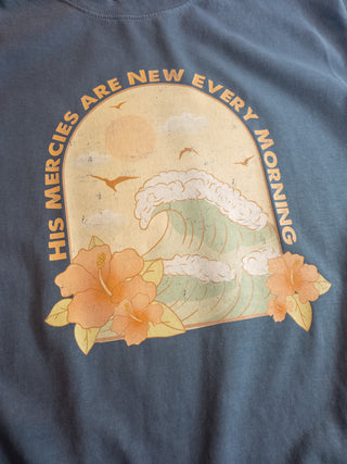 His Mercies Are New Every Morning Washed Denim BC Dyed Short Sleeve Tee