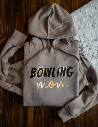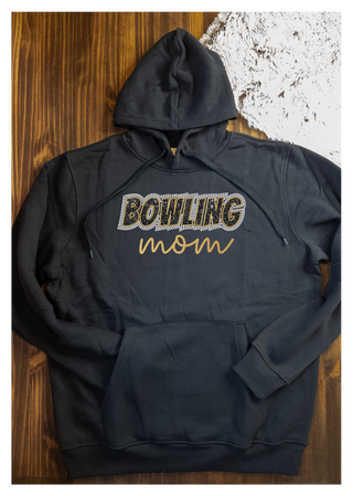 Bowling Mom Rhinestone Black Core Fleece Hoodie