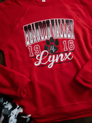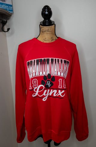 Brandon Valley Lynx Distressed Red Crewneck Sweatshirt