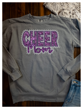 Cheer Mom Rhinestone Dyed Crewneck Sweatshirt - Purple Accents