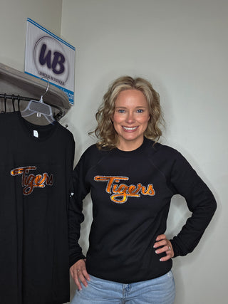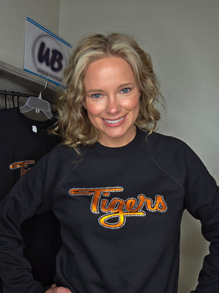 Tigers Orange Metallic and Rhinestones Raglan Crewneck Sweatshirt