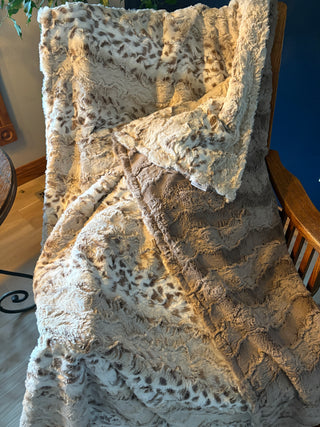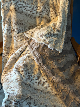 Wild Lynx Ice Taupe Minky Blanket w/Neutral Glacier Backing *Ready To Ship
