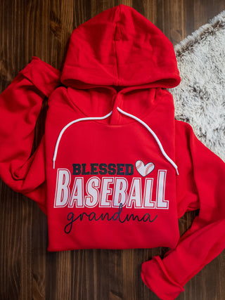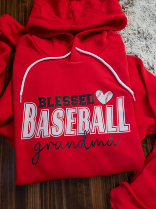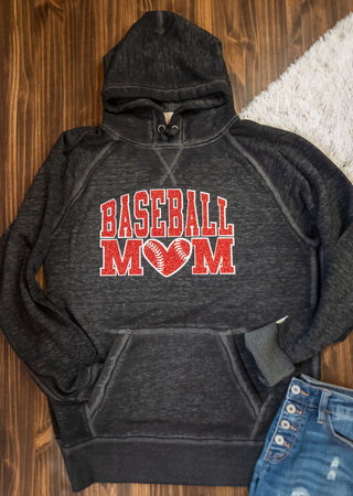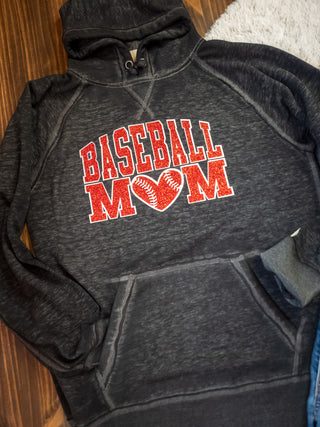 XL Baseball Mom Puff And Rhinestone Dyed Gray Fleece Hoodie