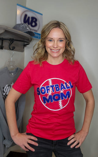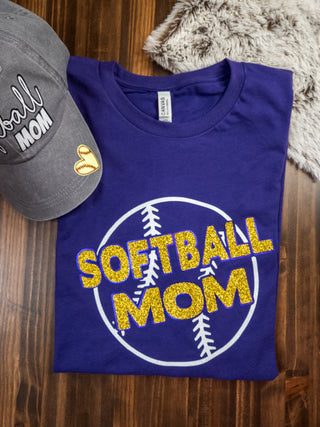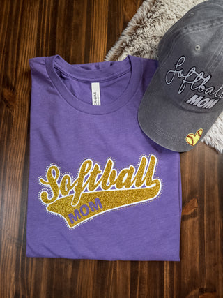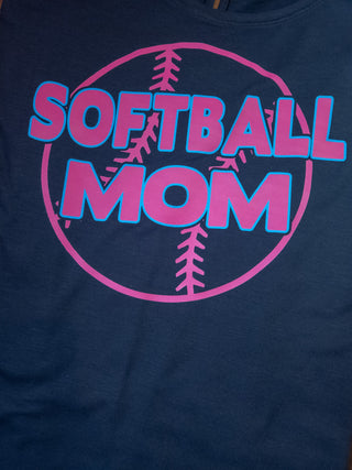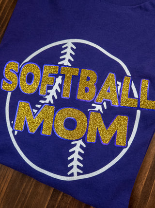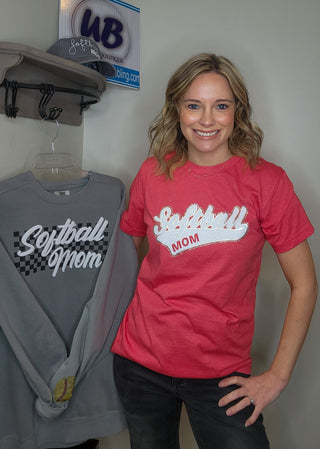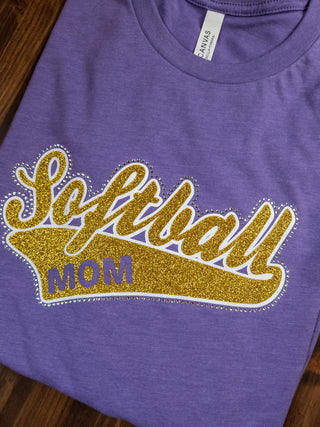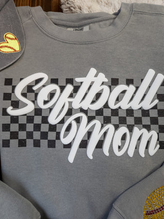 LARGE Softball Mom Puff and Rhinestone Dyed Gray Crewneck Sweatshirt