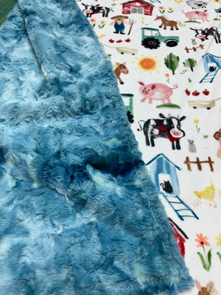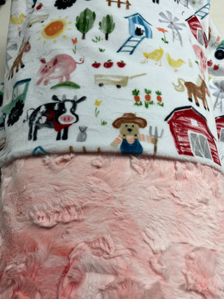 Farmer & Farm Animals Minky Blankets- Choose Size & Color of Minky Backing