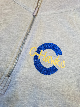 C C-Hawks Grandma Rhinestone Heather Gray Half Zip Pullover - Ladies Fit