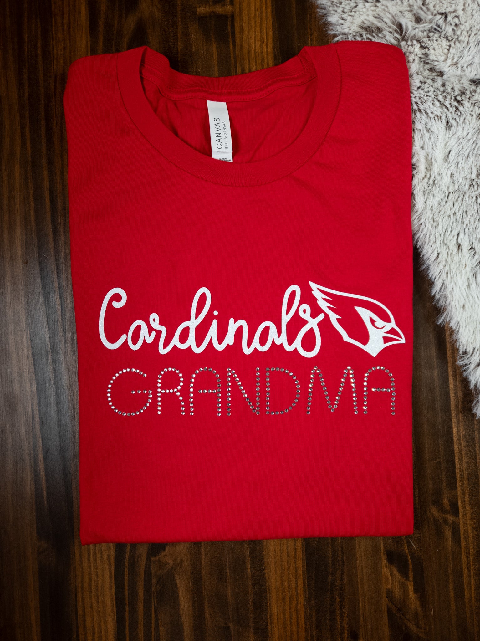Grandmas are THE best fans! And she can cheer loud in this Cardinals Grandma tee with rhinestones. A classic adult fit. If you would like to add a name on the back, please select the personalization option.
