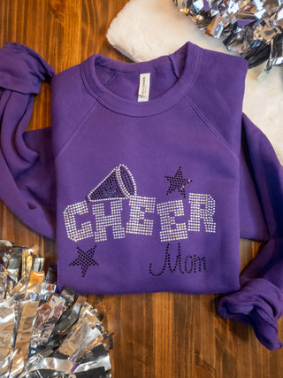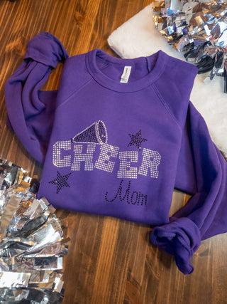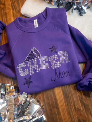 LARGE Cheer Mom Rhinestone Purple Crewneck Sweatshirt