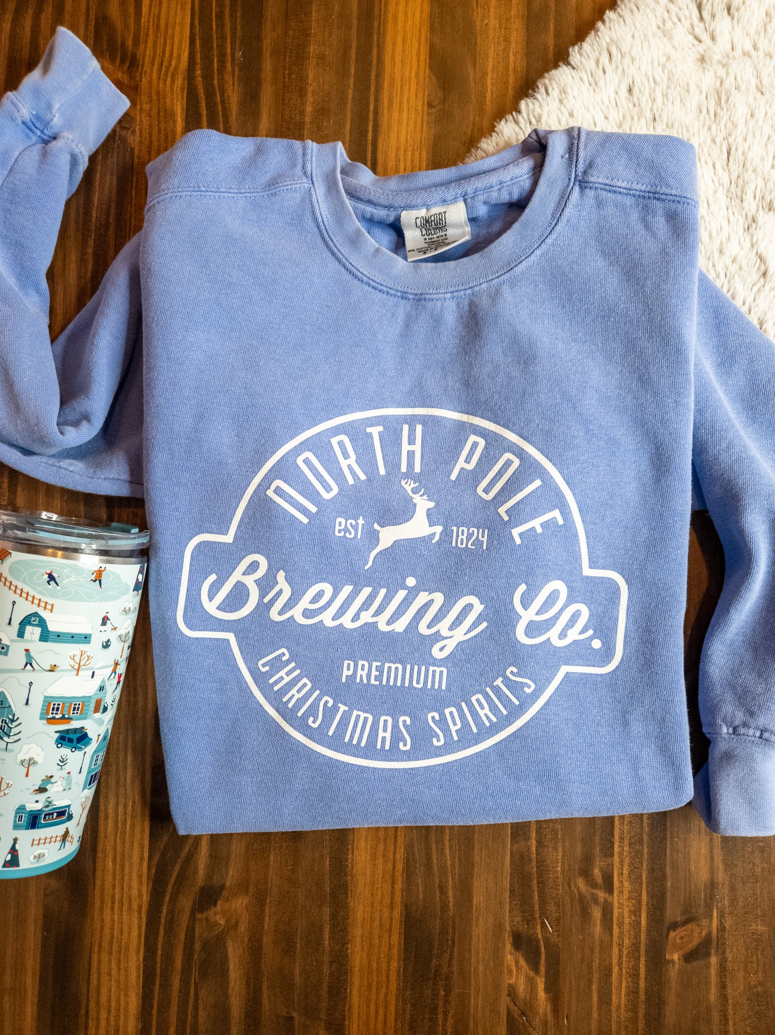 This sweatshirt is so fun and the print it is premiere feature! A beautiful shade of blue with a white sparkle design. This sweatshirt itself is a crewneck offering all day comfort with a longer length.