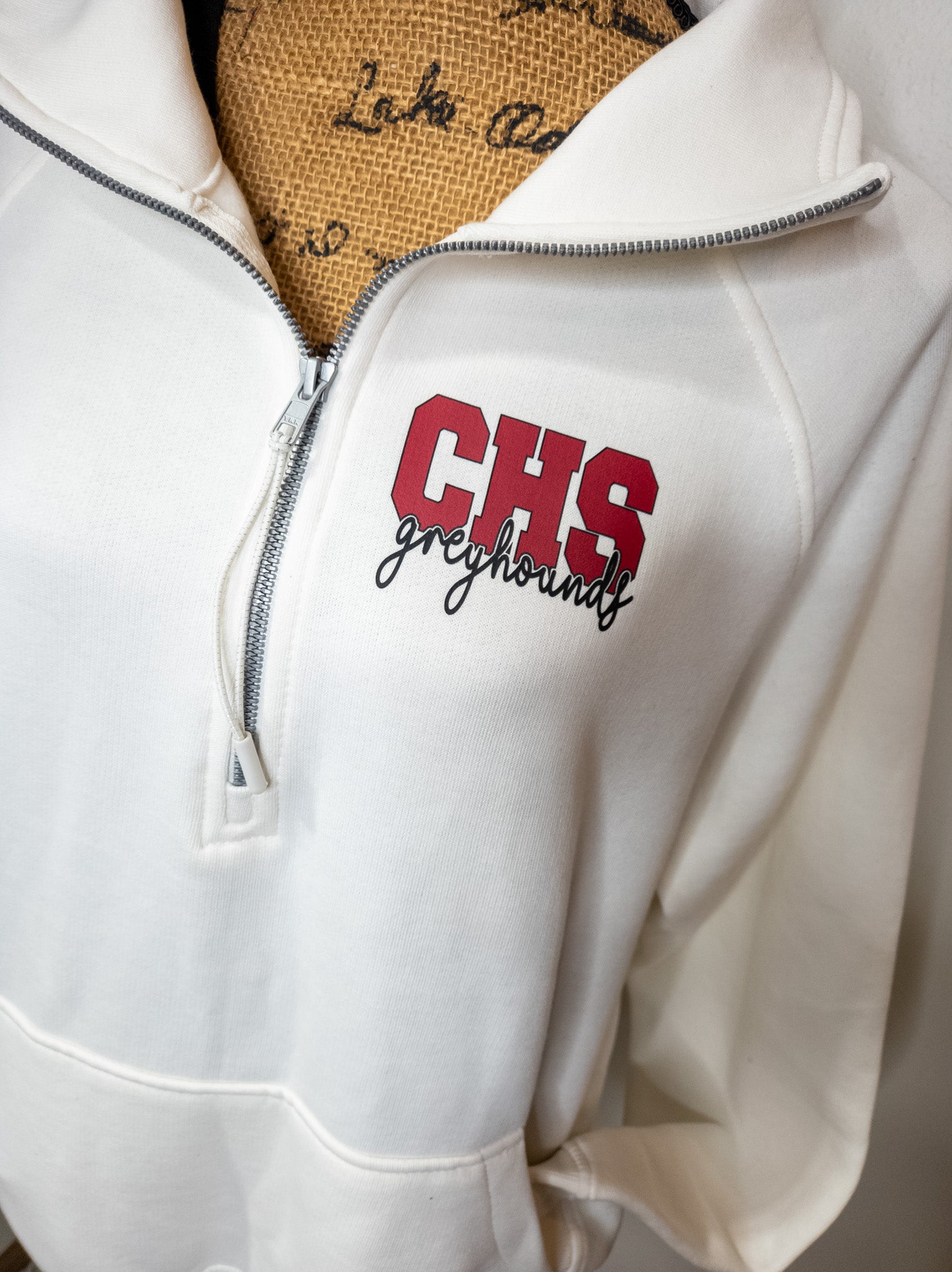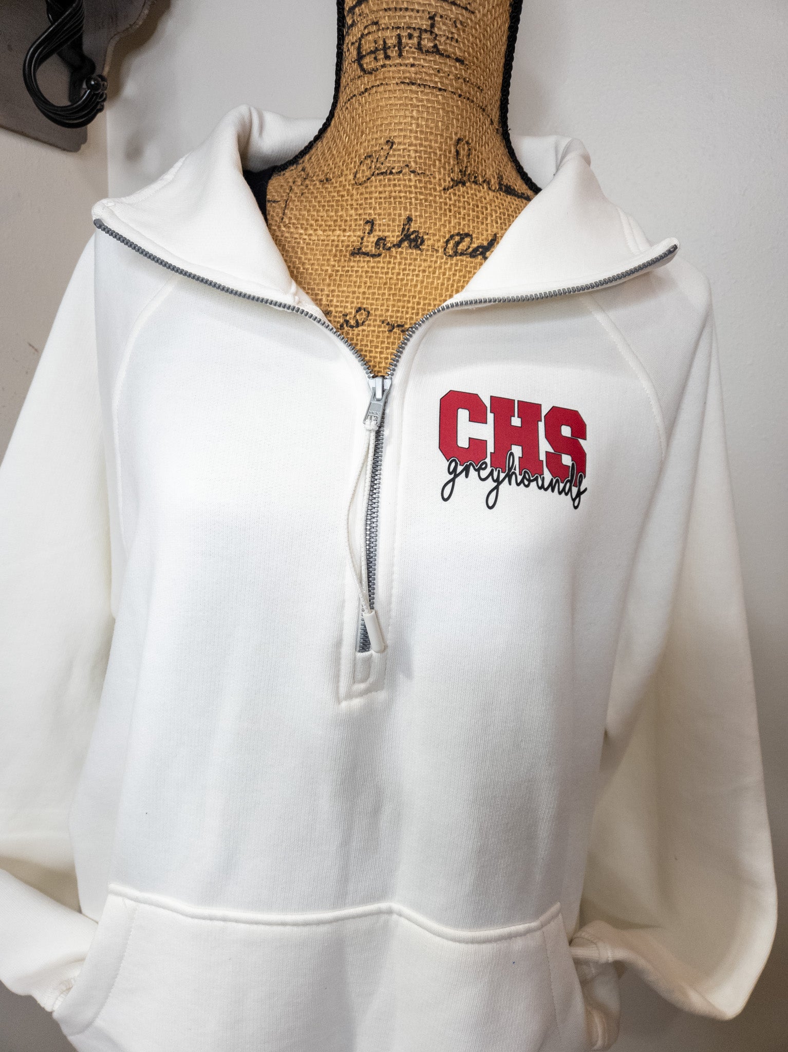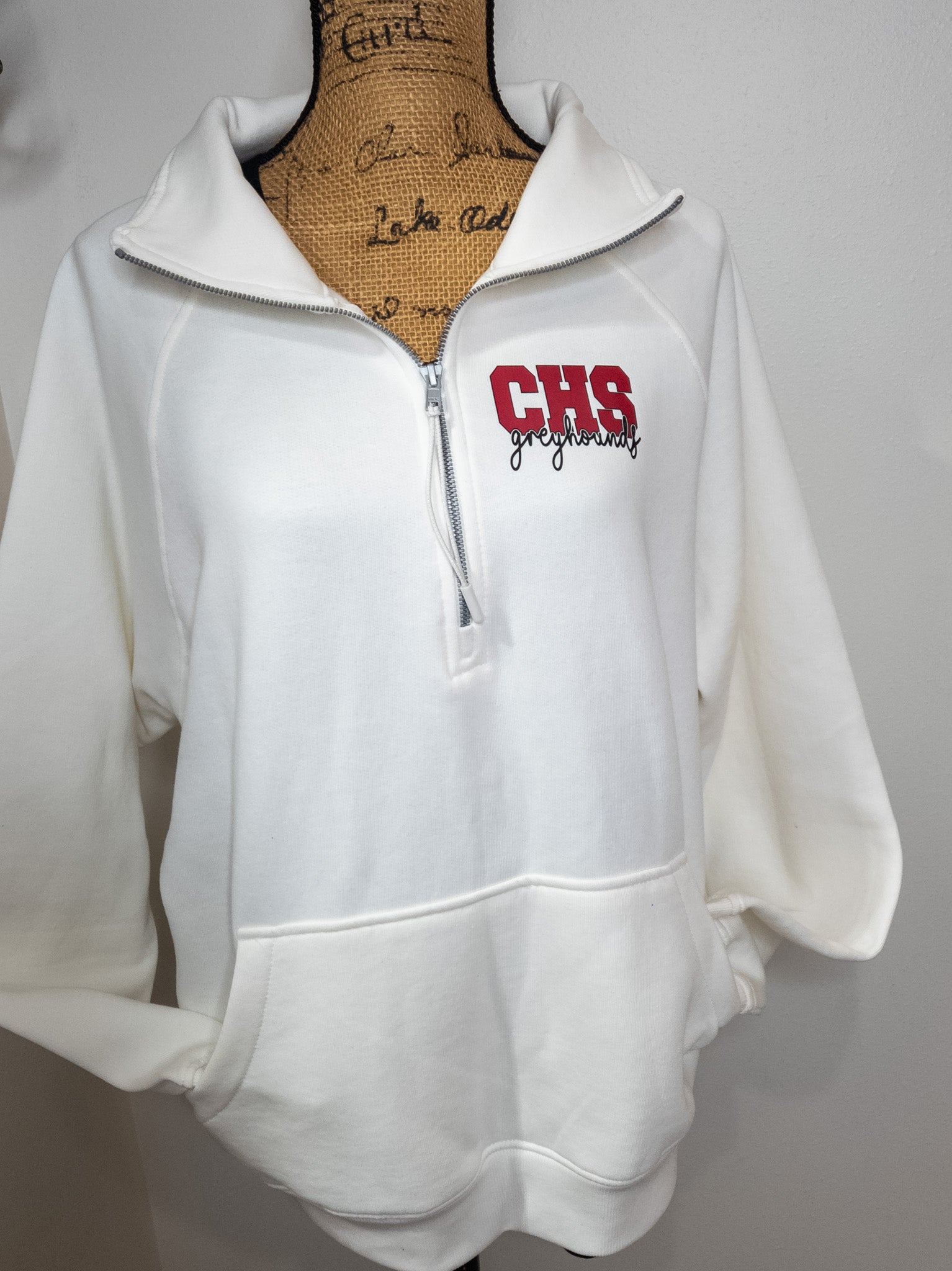Perfect for all things Greyhounds! A relaxed, oversized fit, that is just so easy to grab and wear. So cozy and stylish! This half zip pullover has a cadet collar with a stylish zipper pull, raglan sleeves, ribbed cuffs and waistband, front pocket plus the color is gorgeous.