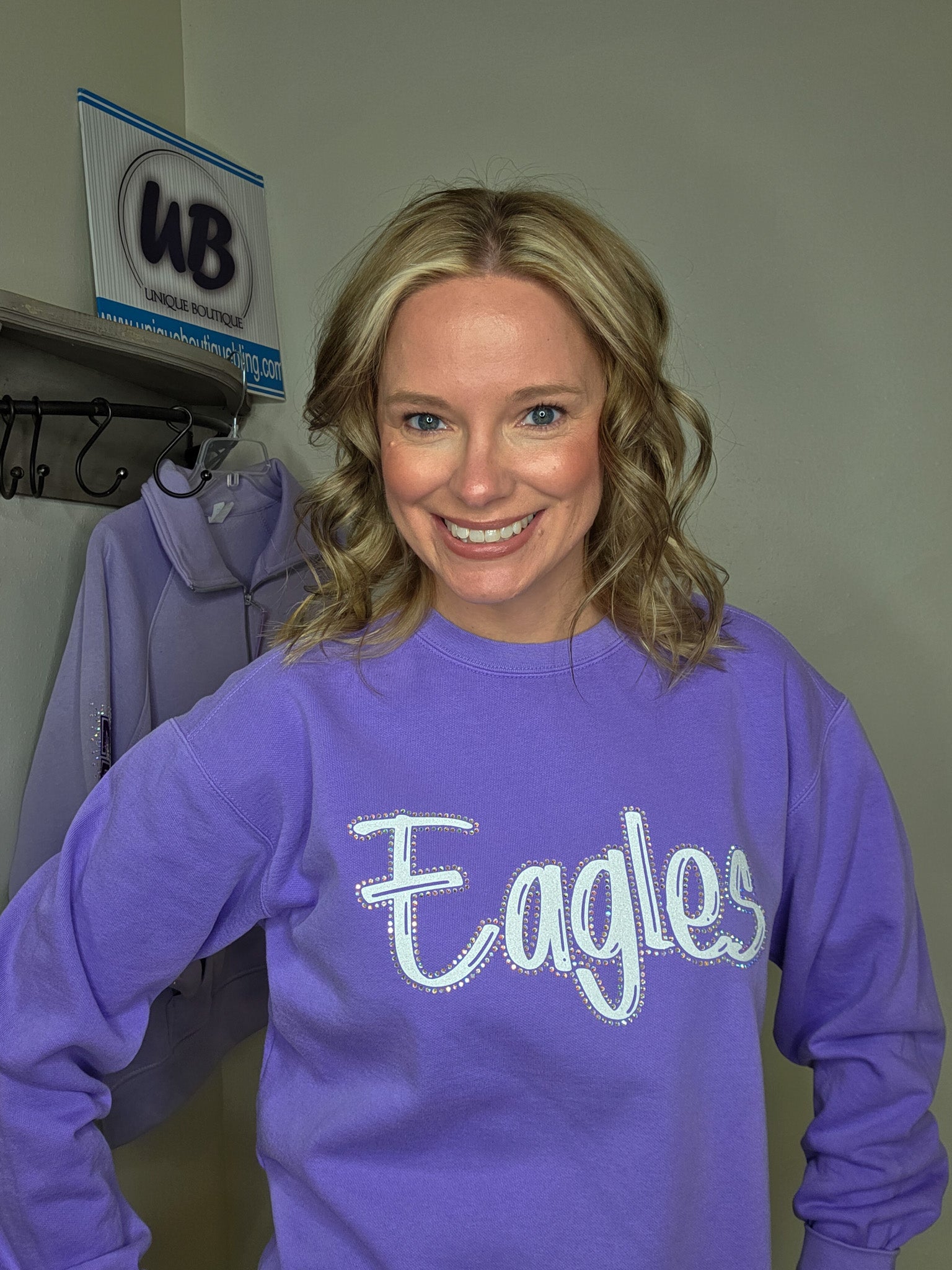 Eagles Rhinestone Dyed Violet Crewneck Sweatshirt
