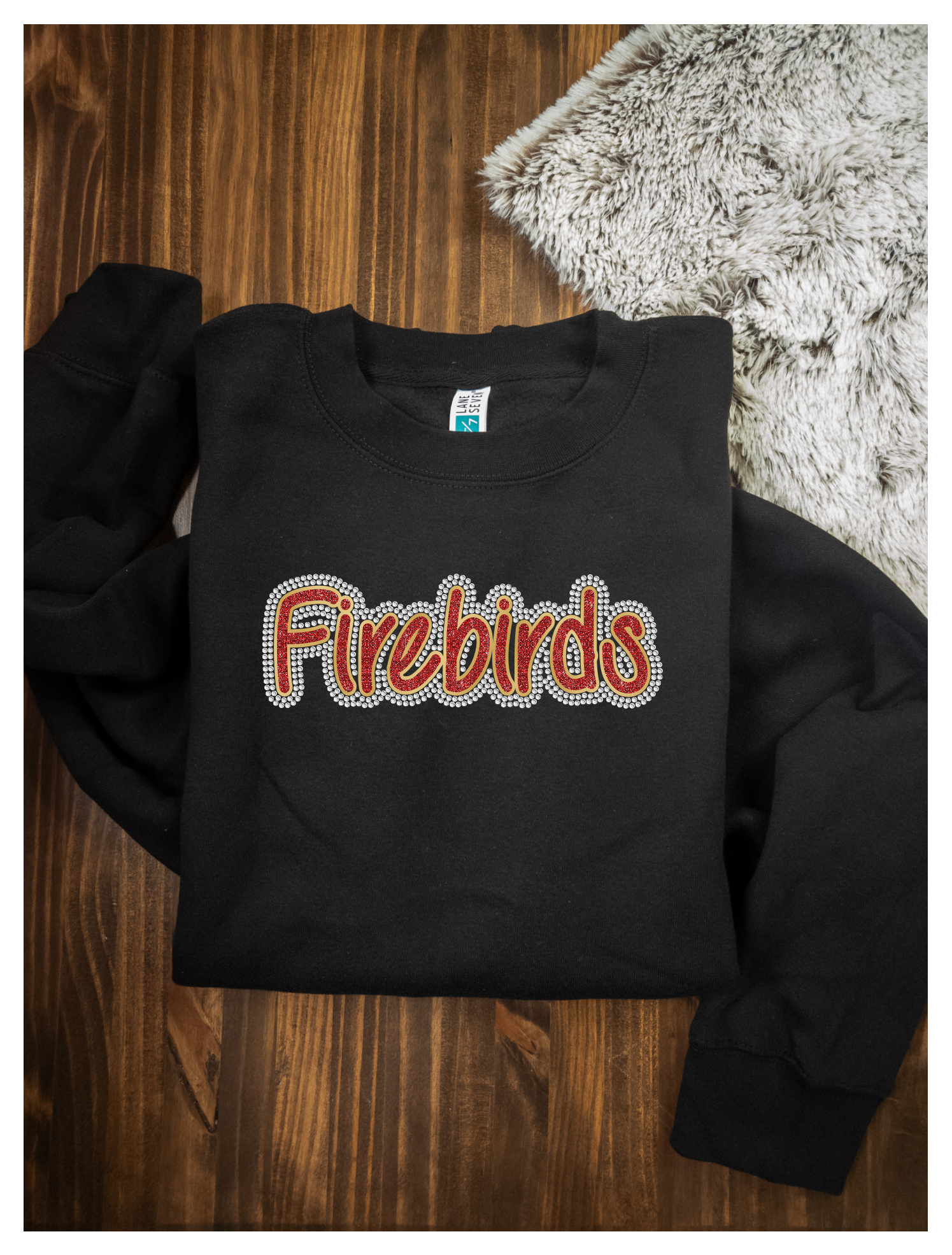 Firebirds Rhinestone Black Plush Crewneck Sweatshirt