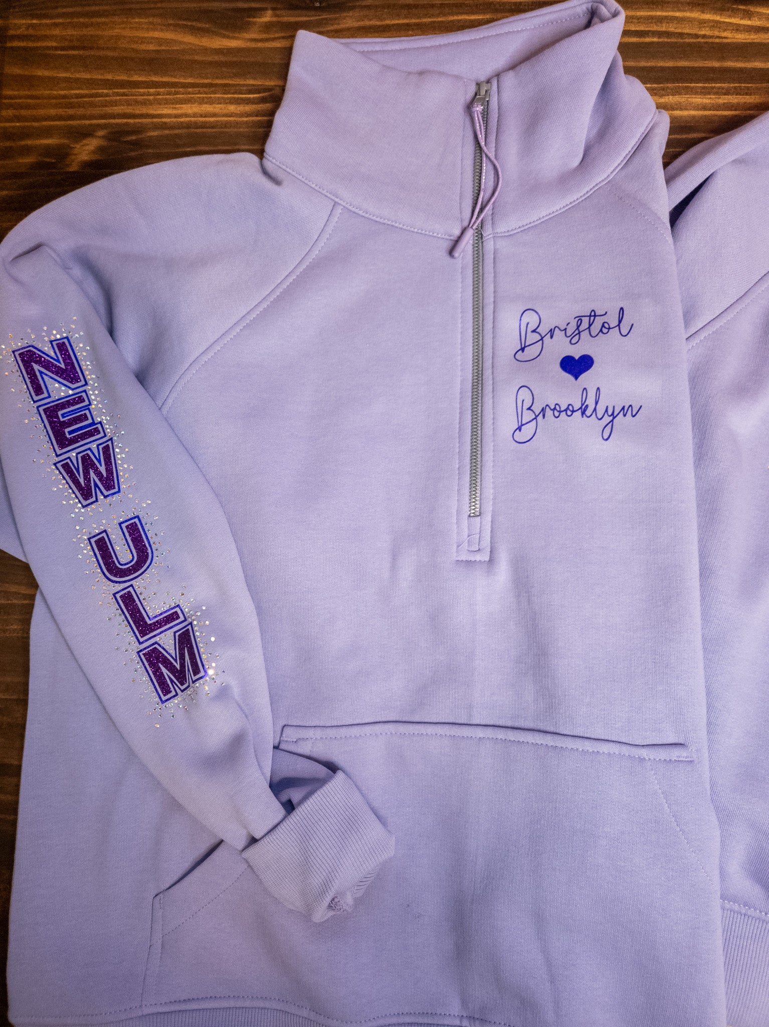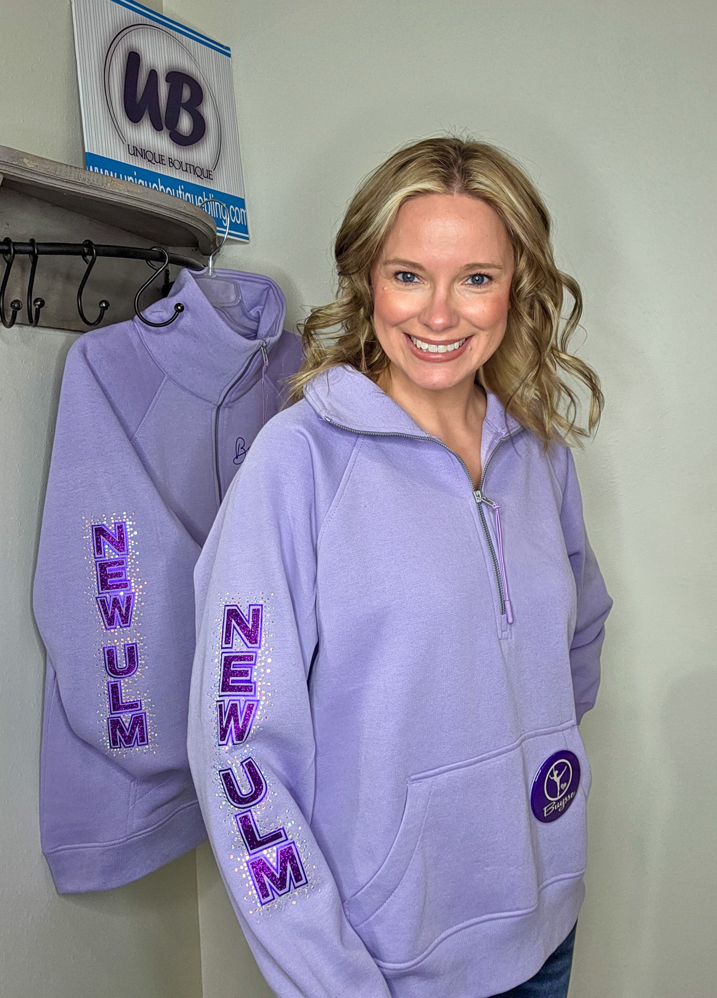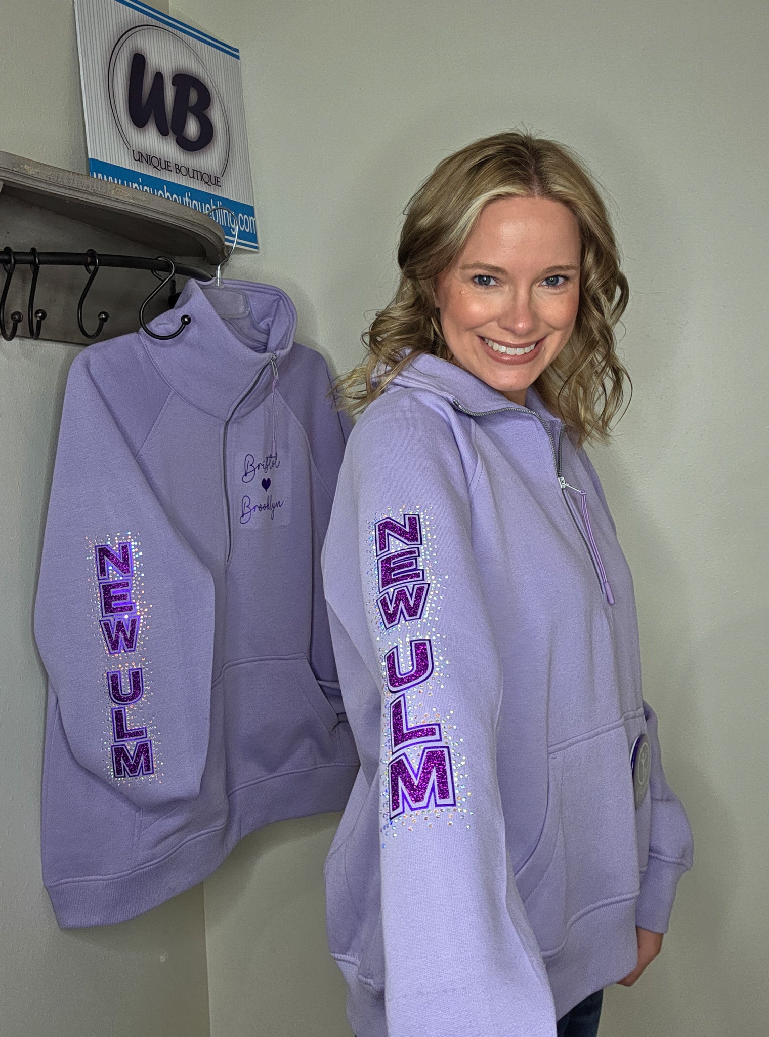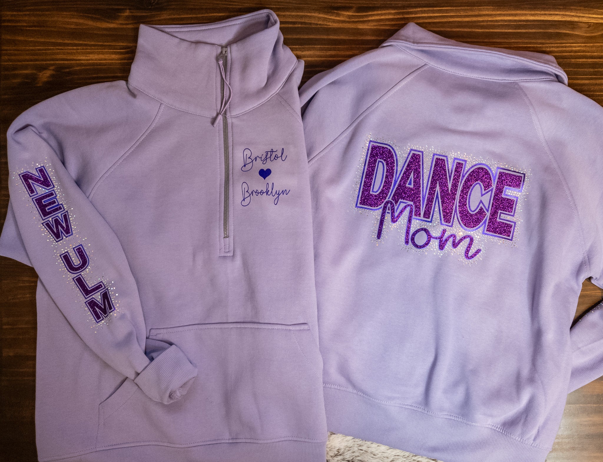 New Ulm Dance Mom Rhinestone Orchid Half Zip Pullover - Ladies Fit