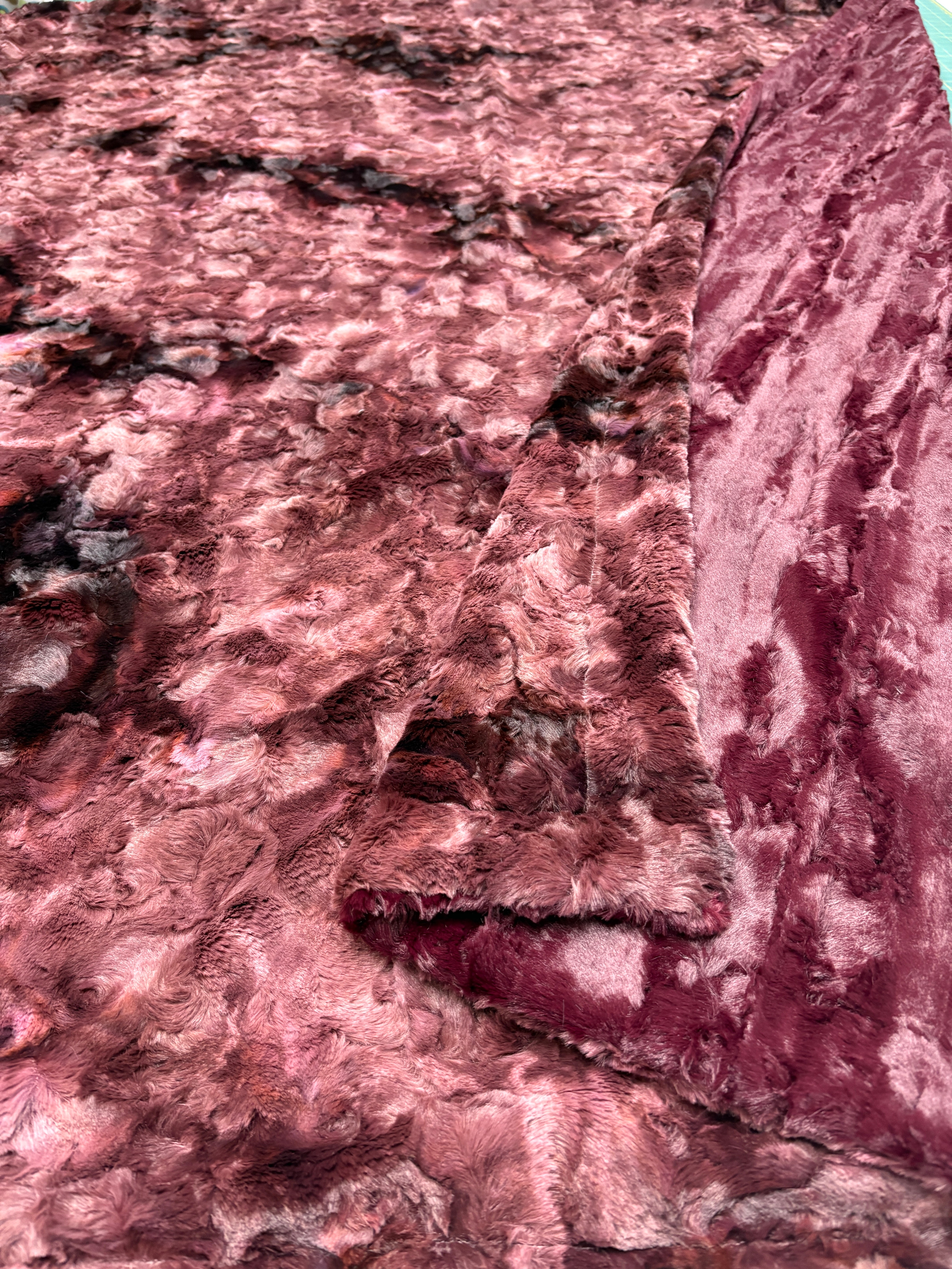 This Black Cherry Galaxy Luxe Minky reminds me of marbles with its unique color variation. It is backed with the NEW Black Cherry Willlow Minky for a total pop of color and brightness and cheeriness. The finest from Shannon Fabrics. Top-Stitched Edging and Fluffed Edges. Makes a Beautiful Gift.
