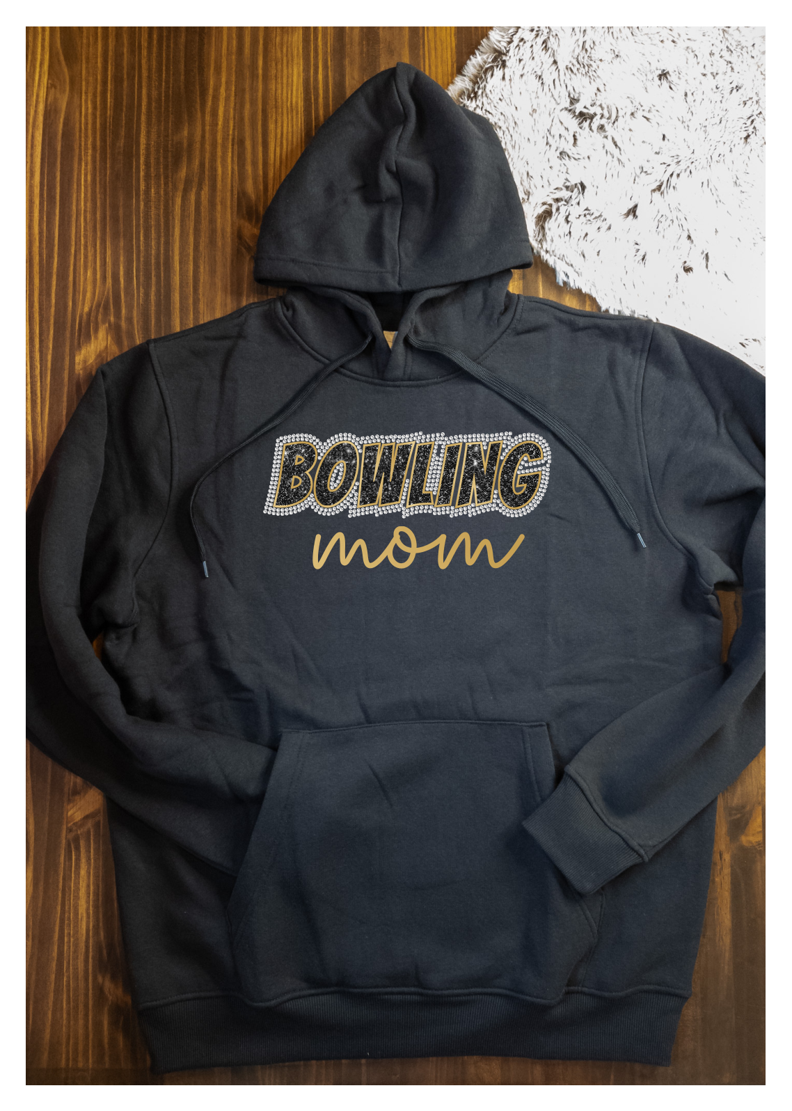 Bowling Mom Rhinestone Black Core Fleece Hoodie