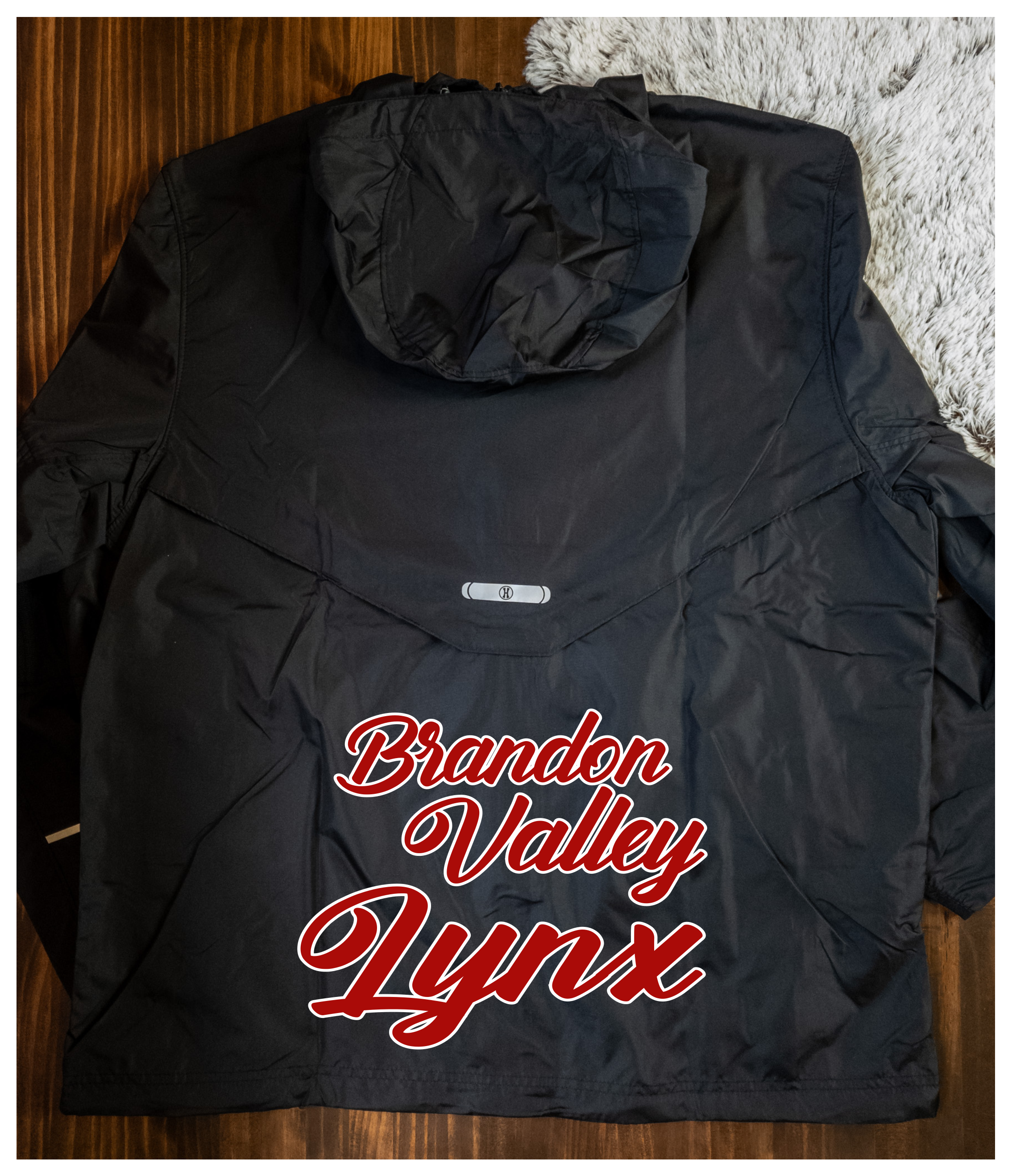 Layer up and head to your next Canistota Hawks event with this jacket! The back sports a large design. Featuring a vibrant black color with reflective accents. It also has front zippered pockets (for all the things!), an open bottom and is a full zip. The jacket itself is wind and water resistant, in both a ladies fit and adult fit. If you would like to add your name or number on the front left chest, please select the personalization option.