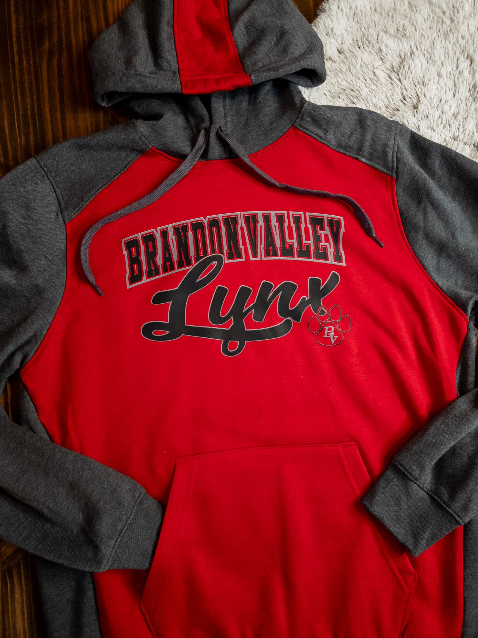 Express your enthusiasm with this colorblock spirit hoodie that showcases your mascot! It features a three-panel with a drawcord set-in sleeves with shoulder inserts, a front pouch pocket, and rib-knit cuffs and band making it a versatile choice for various activities, ensuring comfort. This classic-style hoodie is ideal for wearing all year round, whether for sports, casual outings, lounging at home. Available in youth, ladies and an adult fit. If you would like to add your name on the back, please select the personalization option.
