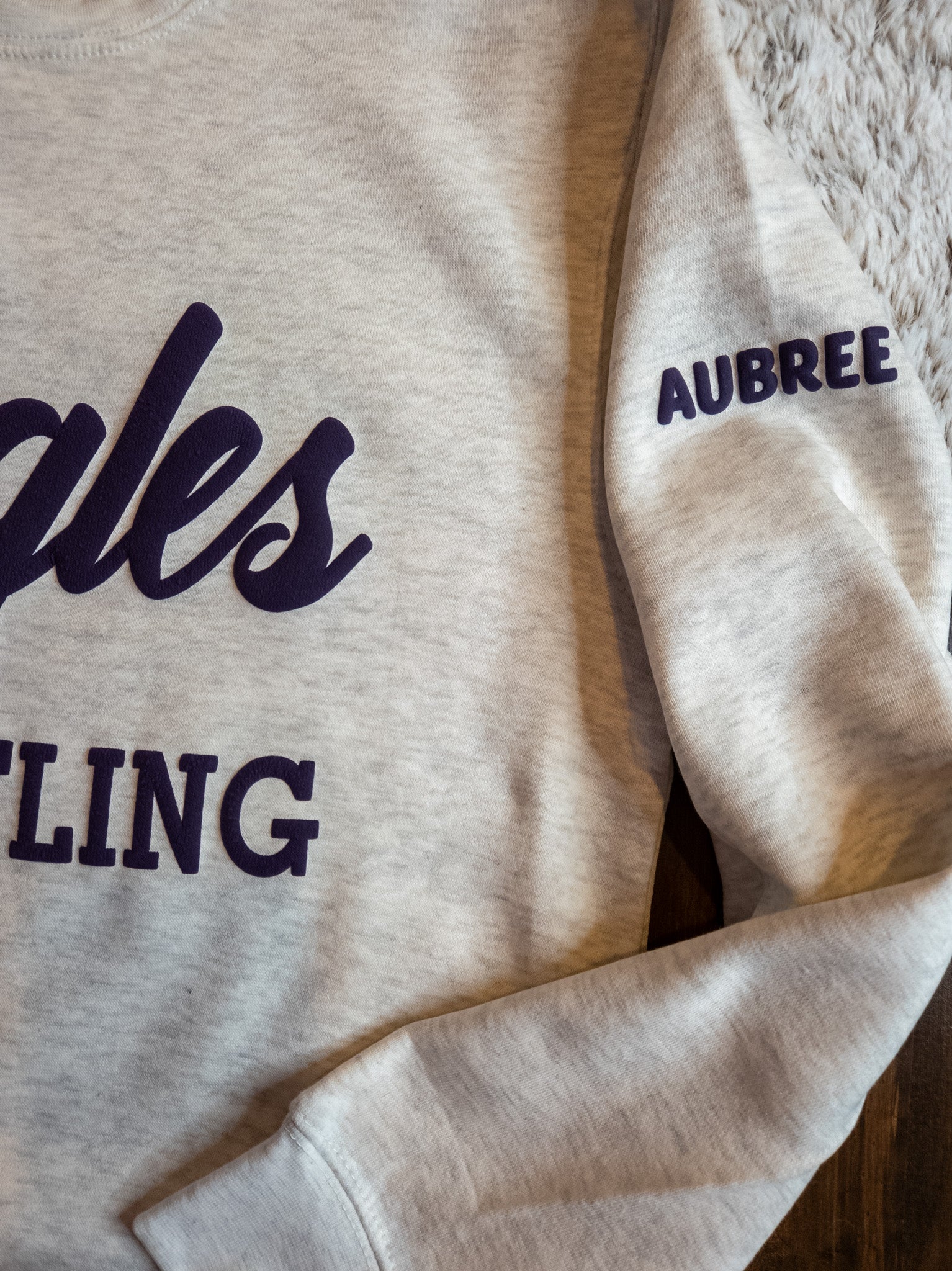 This premium crewneck sweatshirt has a plush and lofty feel to it with super-soft fleece. Plus, the print will have you ready to be your best at any team event. A standard fit with room to breathe. Choose your typical size or opt to size up for a looser feel. For added customization, select the personalization option to have a name printed on the sleeve like shown.