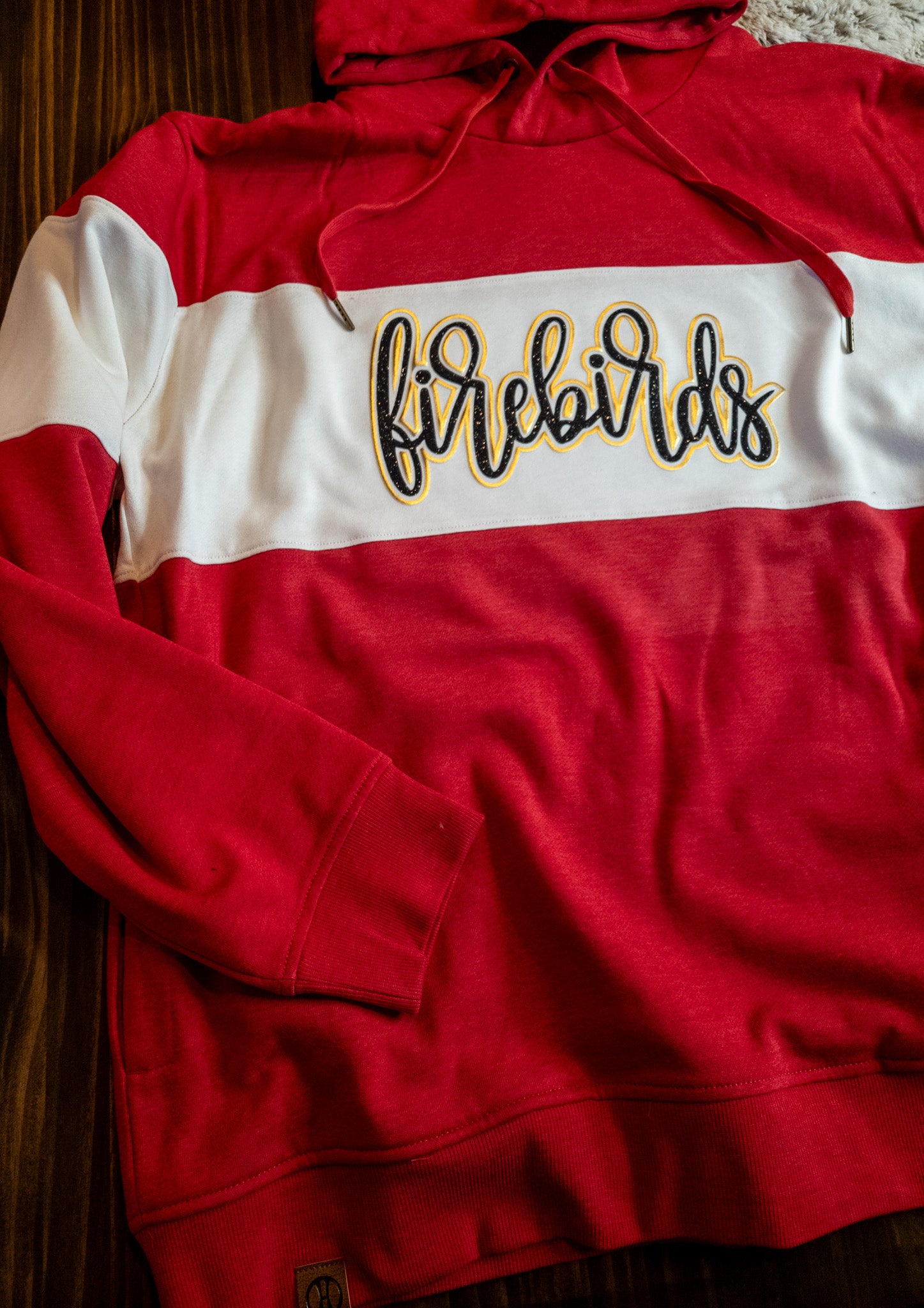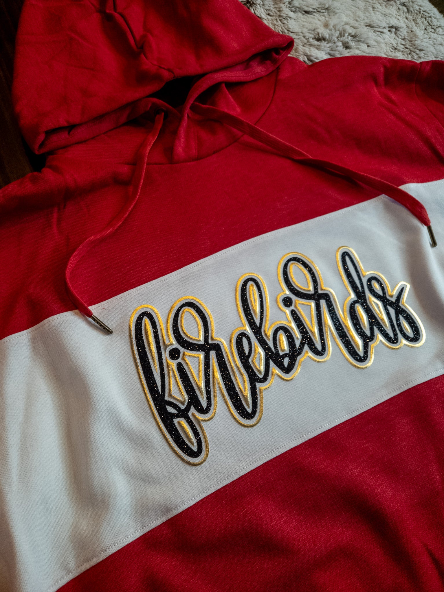 This colorblock league sweatshirt is a great addition to your spiritwear collection. The hoodie is made with a super soft fleece and a jersey lined hood with metal tipped drawcords for comfort and style. And the print is a big and bold style to make an impression. If you would like to add a name on the back, please select the personalization option.