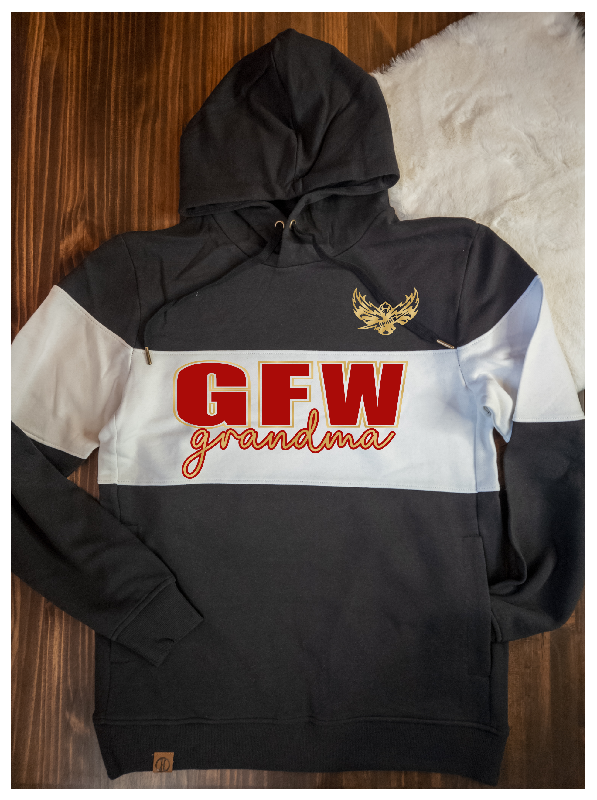 This colorblock league sweatshirt is a great addition to your spiritwear collection. The hoodie is made with a super soft fleece and a jersey lined hood with metal tipped drawcords for comfort and style. And the print is a big and bold style to make an impression. If you would like to add a name on the back, please select the personalization option.