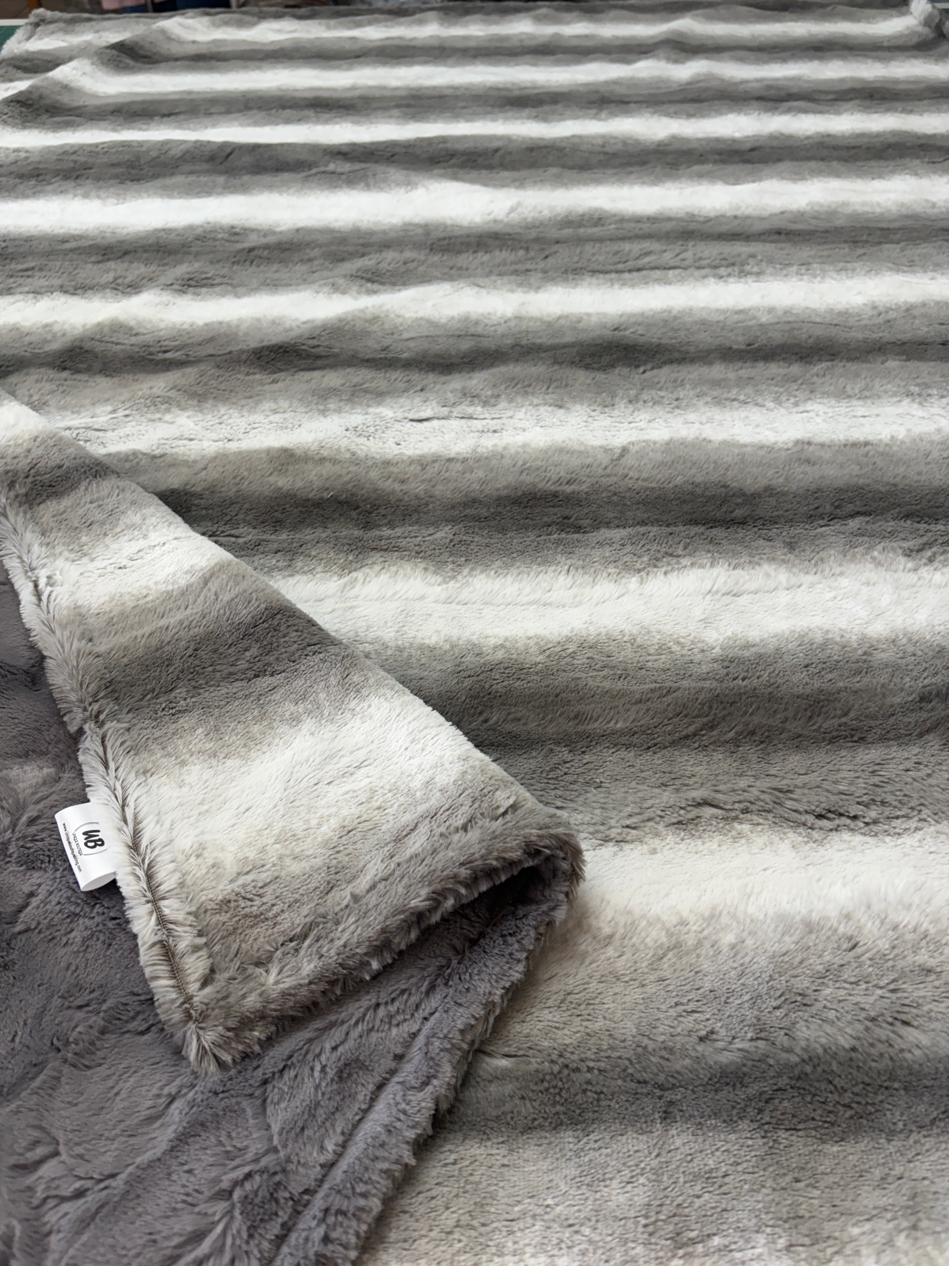 LAST ONE!!! Super soft Minky with tones of Grays and White in Stripes backed with Graphite Gray Hide. So Lusciously Soft. Top-Stitched Edging.