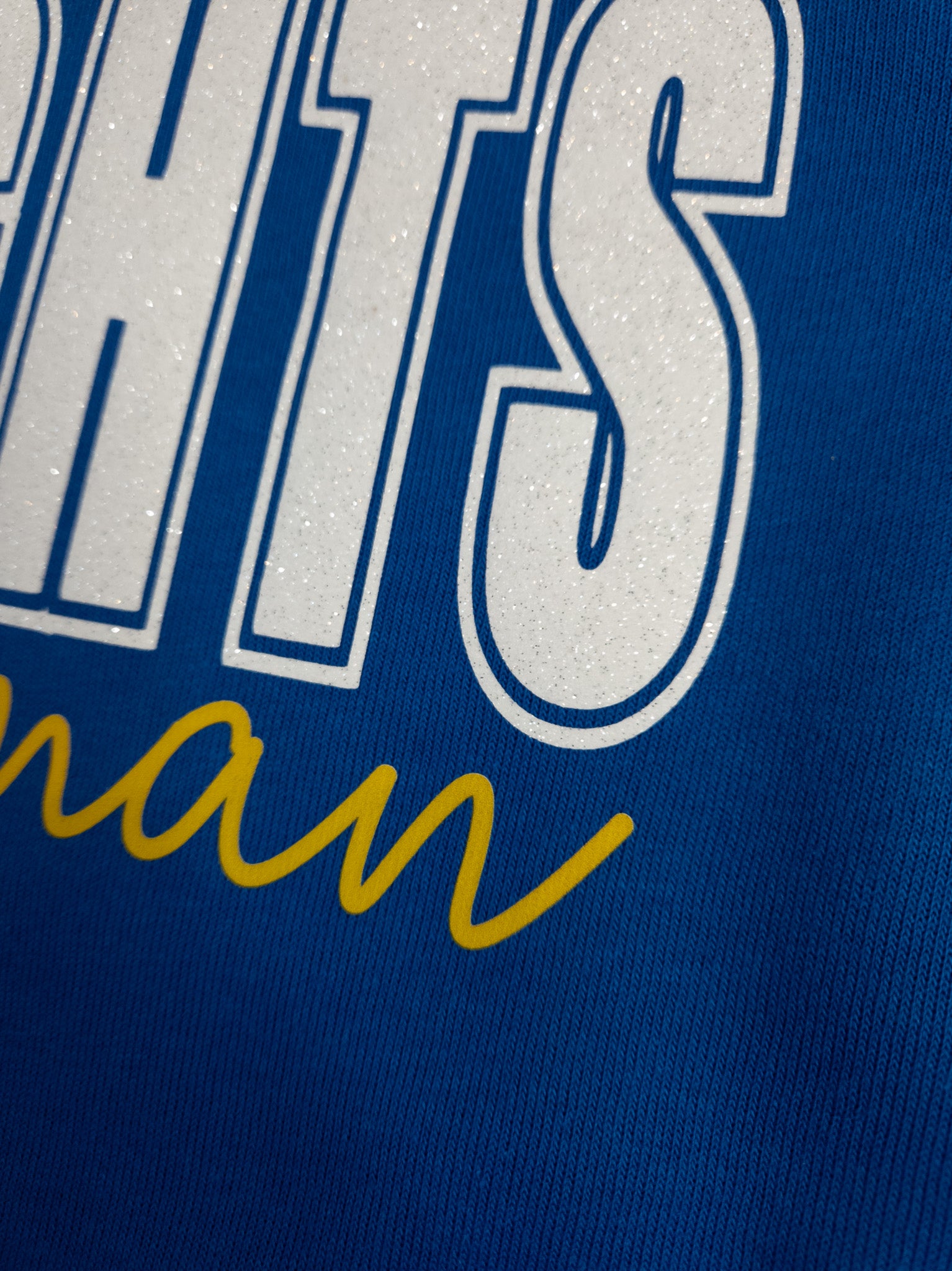Be Knights proud in this cozy crewneck! This guy is so soft you aren't going to want to take it off. An awesome adult fit and super soft ringspun cotton. Pair it with your favorite jeans and head out the door! If you would like to add your name on the back, please select the personalization option.