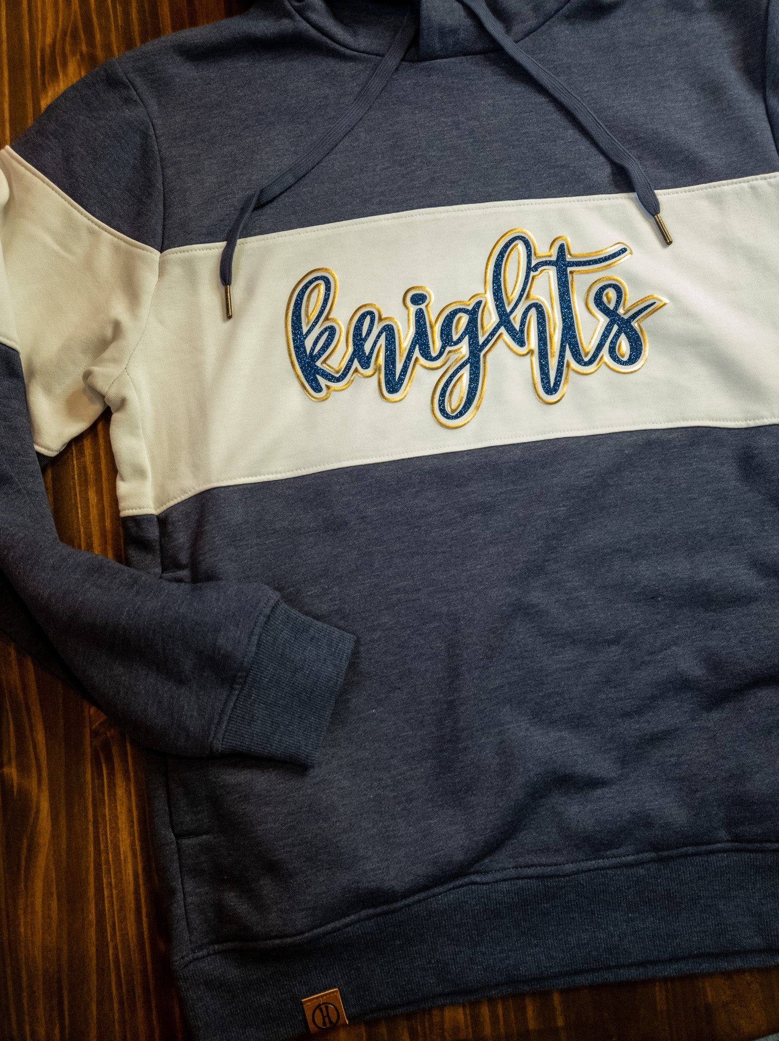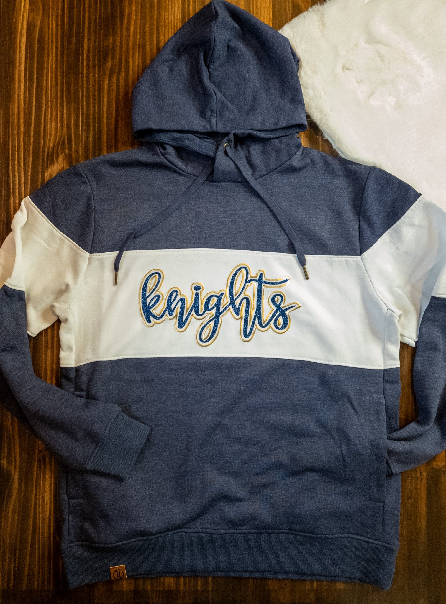 This colorblock league sweatshirt is a great addition to your spiritwear collection. The hoodie is made with a super soft fleece and a jersey lined hood with metal tipped drawcords for comfort and style. And the print is a big and bold style to make an impression. If you would like to add a name on the back, please select the personalization option.