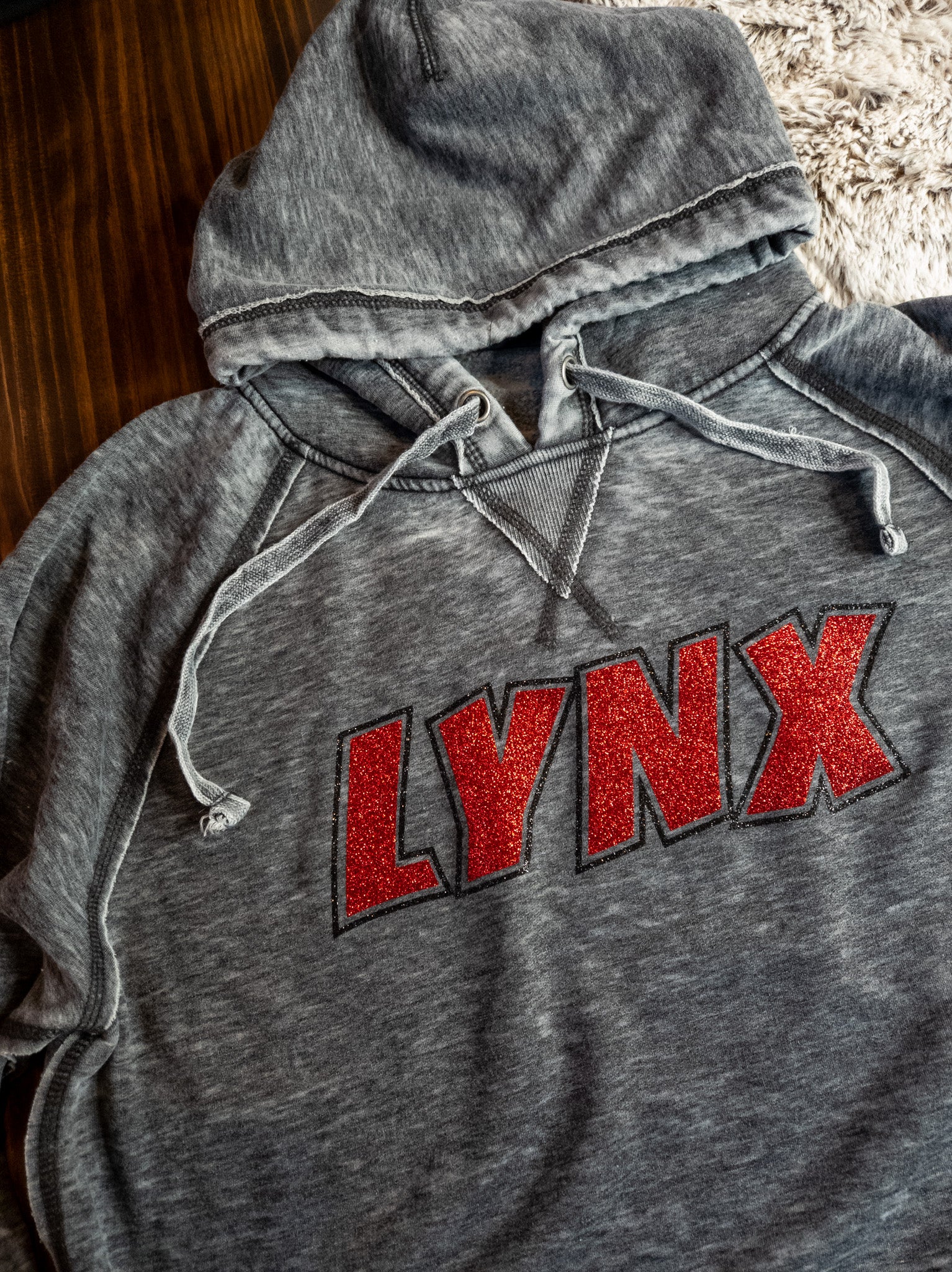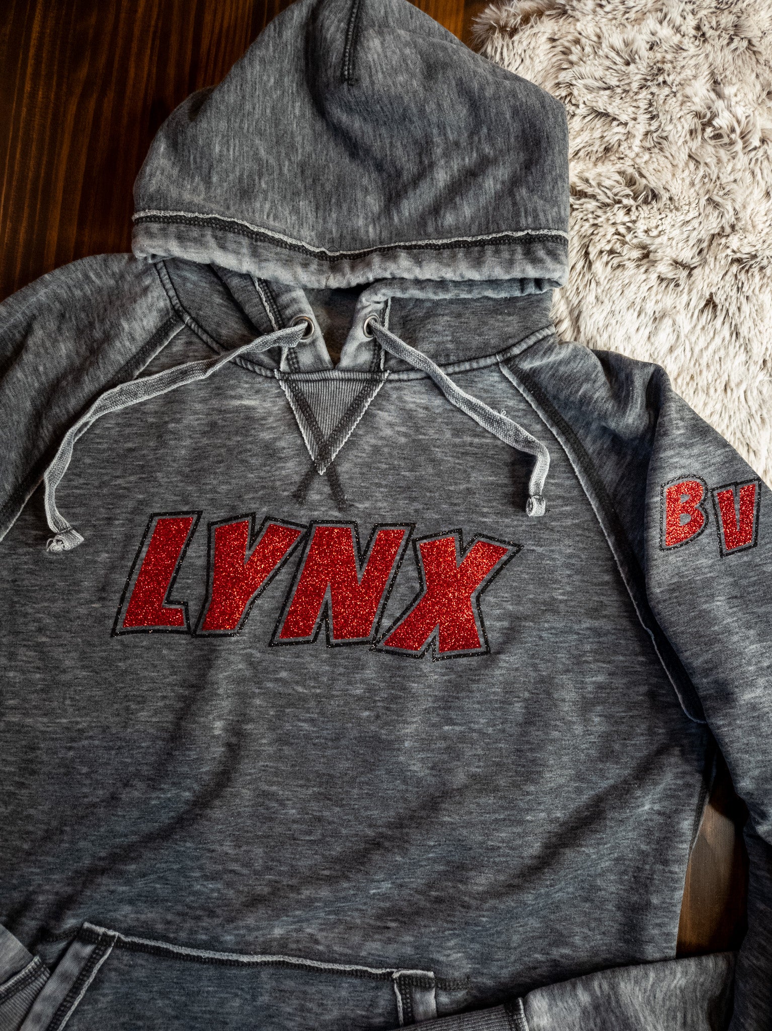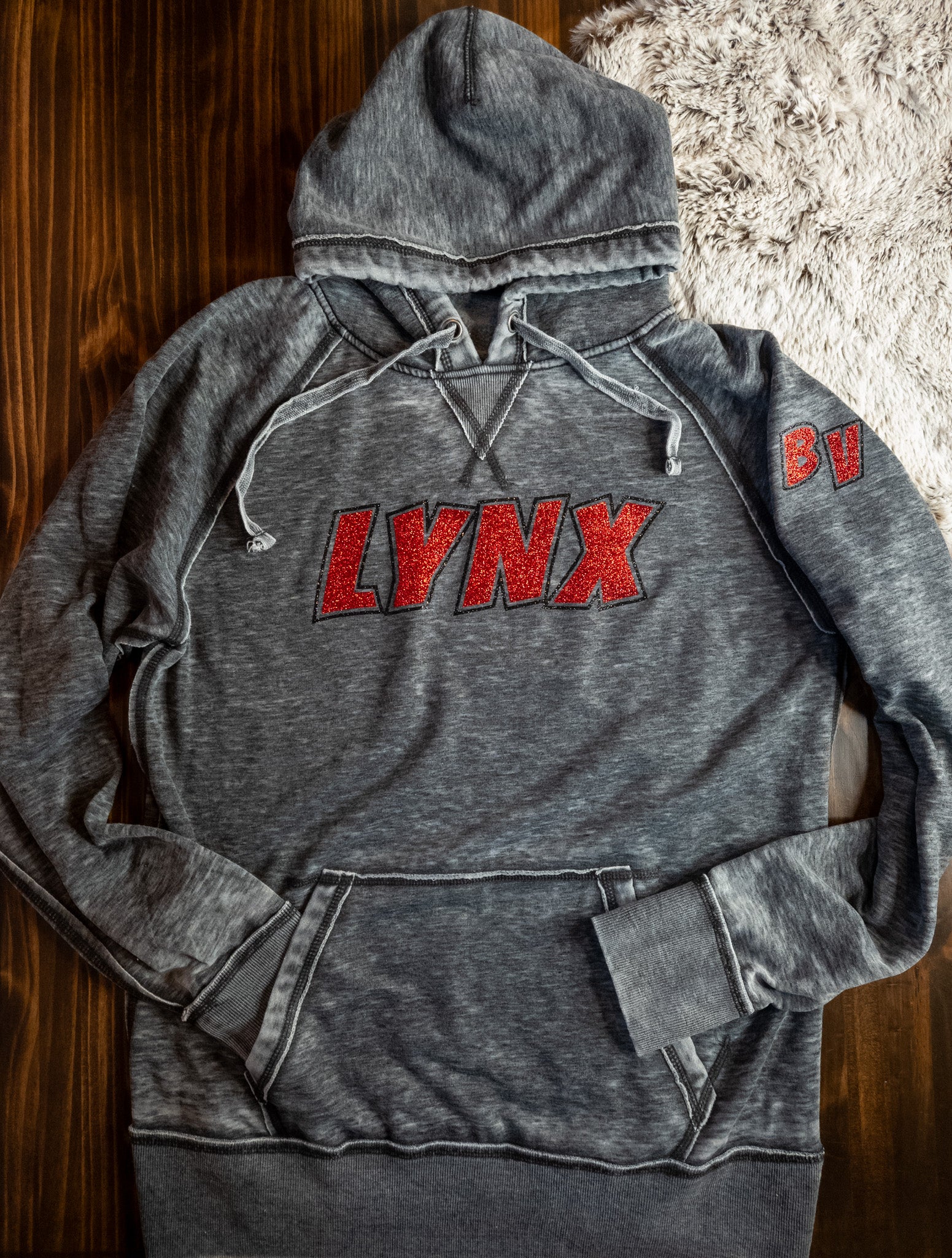 Take in your upcoming Lynx events in this super soft hoodie! This zen fleece hoodie has a vintage vibe with its unique fiber color differences. An acid washed look in an adult fit, featuring a v-notch collar, a matching drawcord, raglan sleeves, pouch pocket and raw edge seams. If you would like to add your name on the back, please select the personalization option.