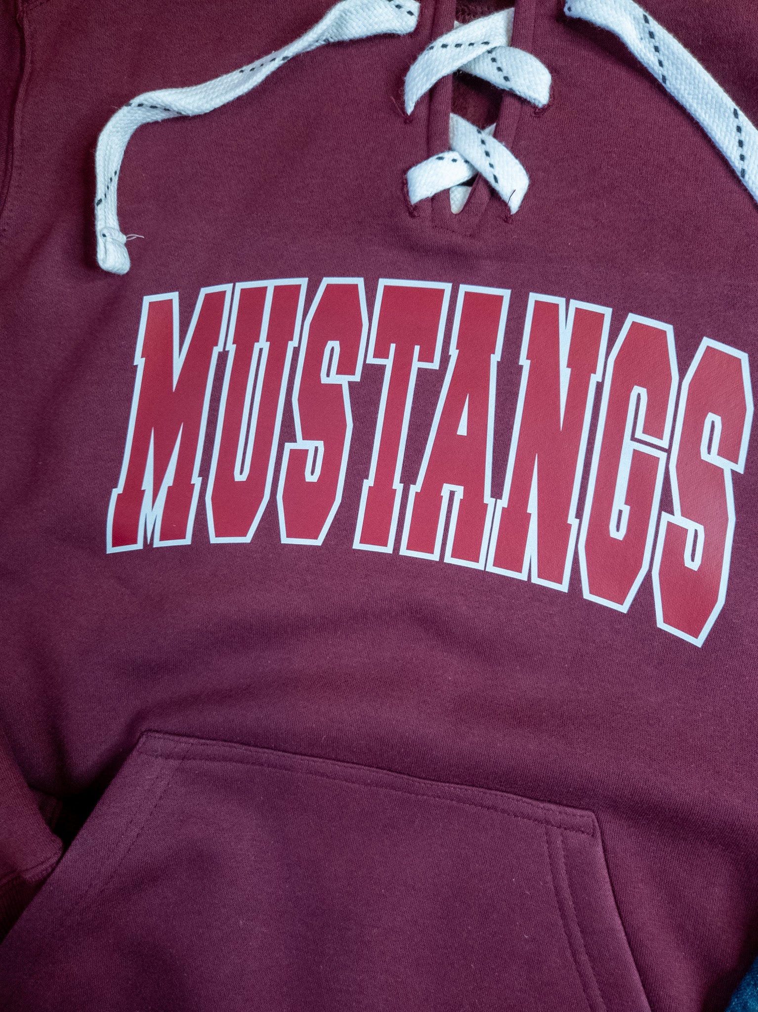Get ready for game day in this lace-up hoodie! It offers a sporty look combined with the comfort of a soft cotton/poly fleece blend. The jersey-lined three-piece sport hood and sport shoulder panel add style and function, while the pouch pocket and ribbed gusset, cuffs, and waistband ensure a cozy fit. Perfect for staying comfortable and spirited during every match. If you would like to add your name to the back, please select the personalization option.