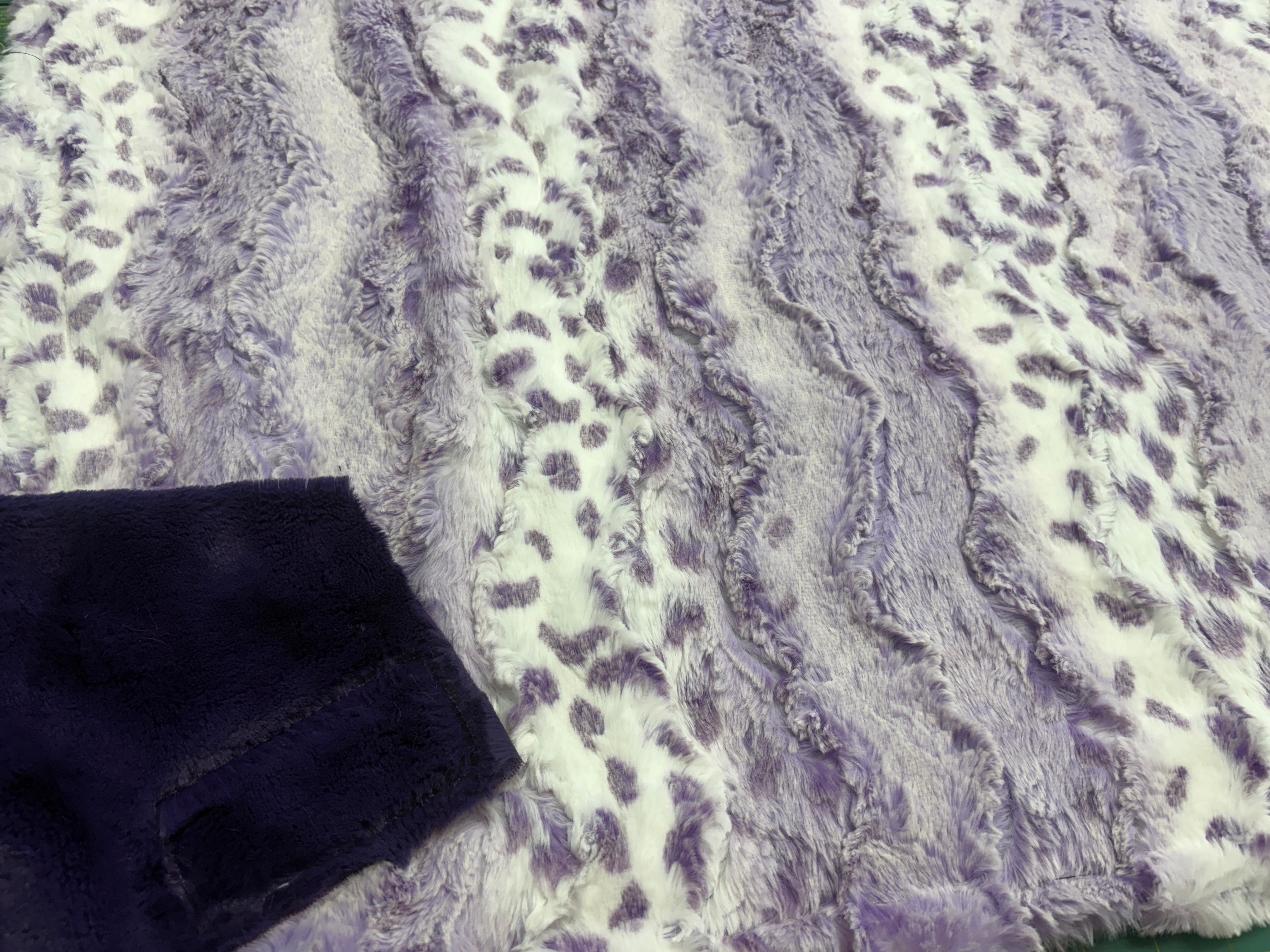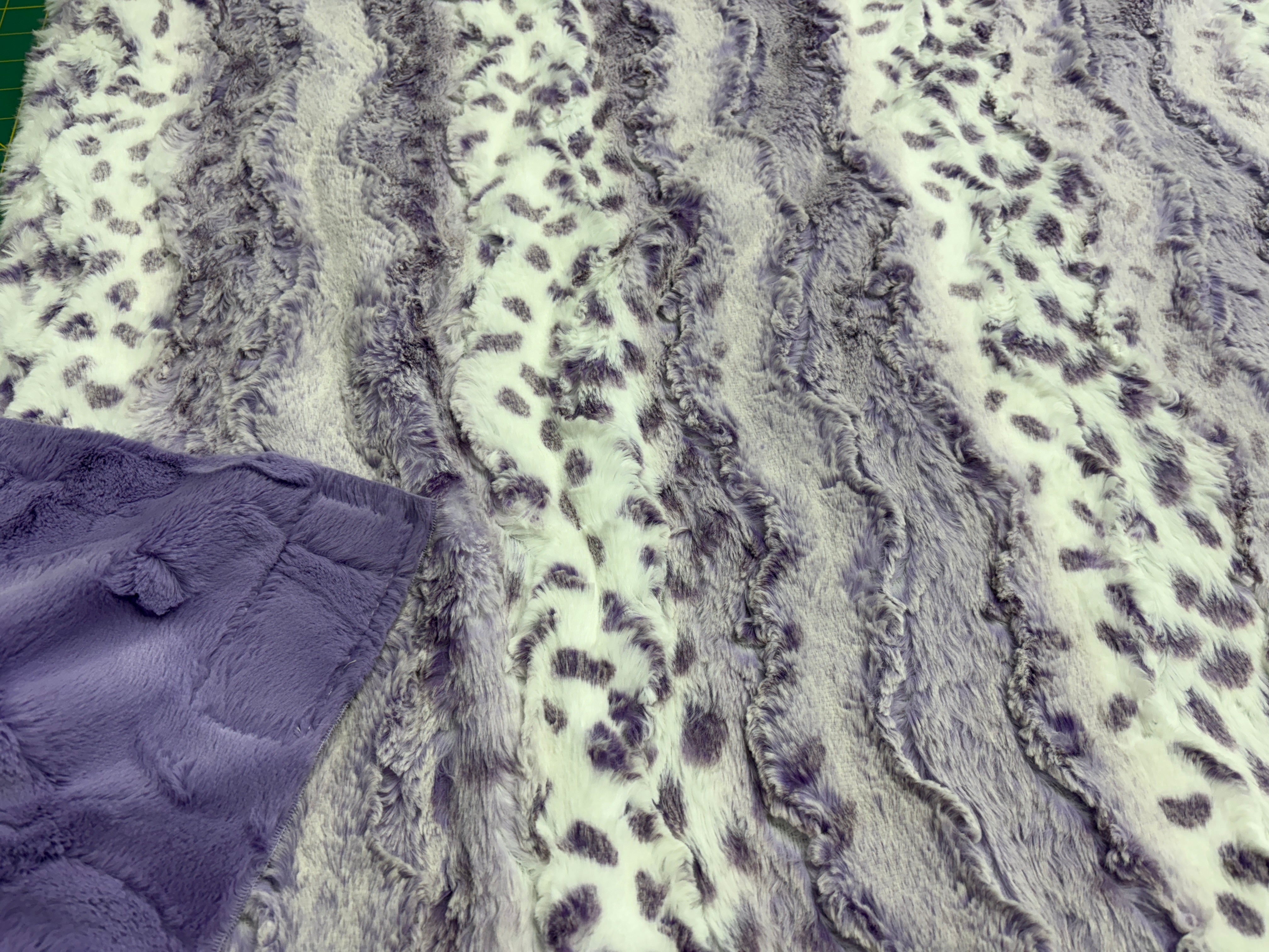 Lavender Purple Wild Lynx Spotted Minky 15 mm high pile with choice of several Luxe Minky options in 10mm high pile.  Both fabrics are the Finest Shannon Fabrics Minky Cuddle available. Makes a Wonderful Gift for ALL Ages.