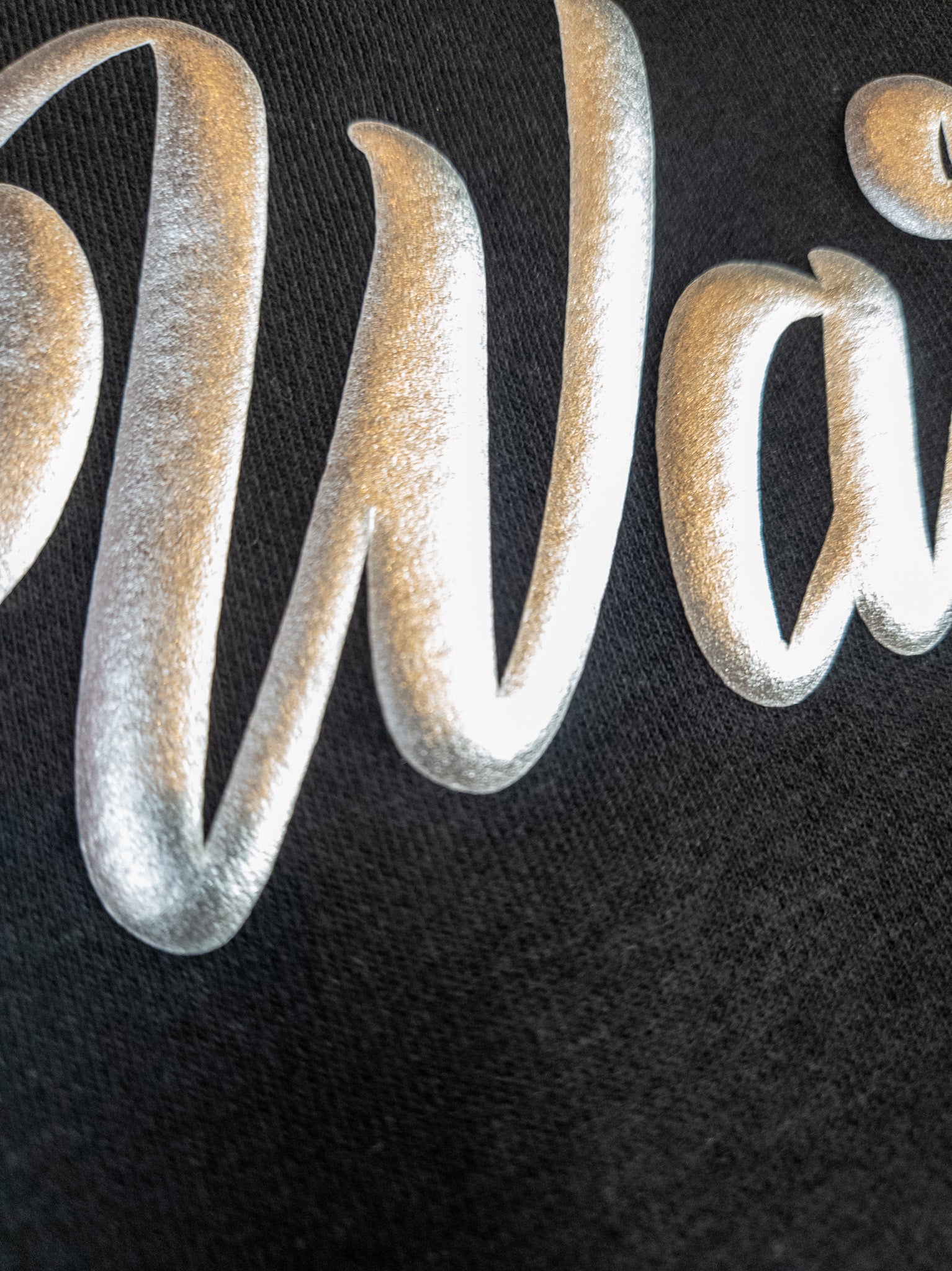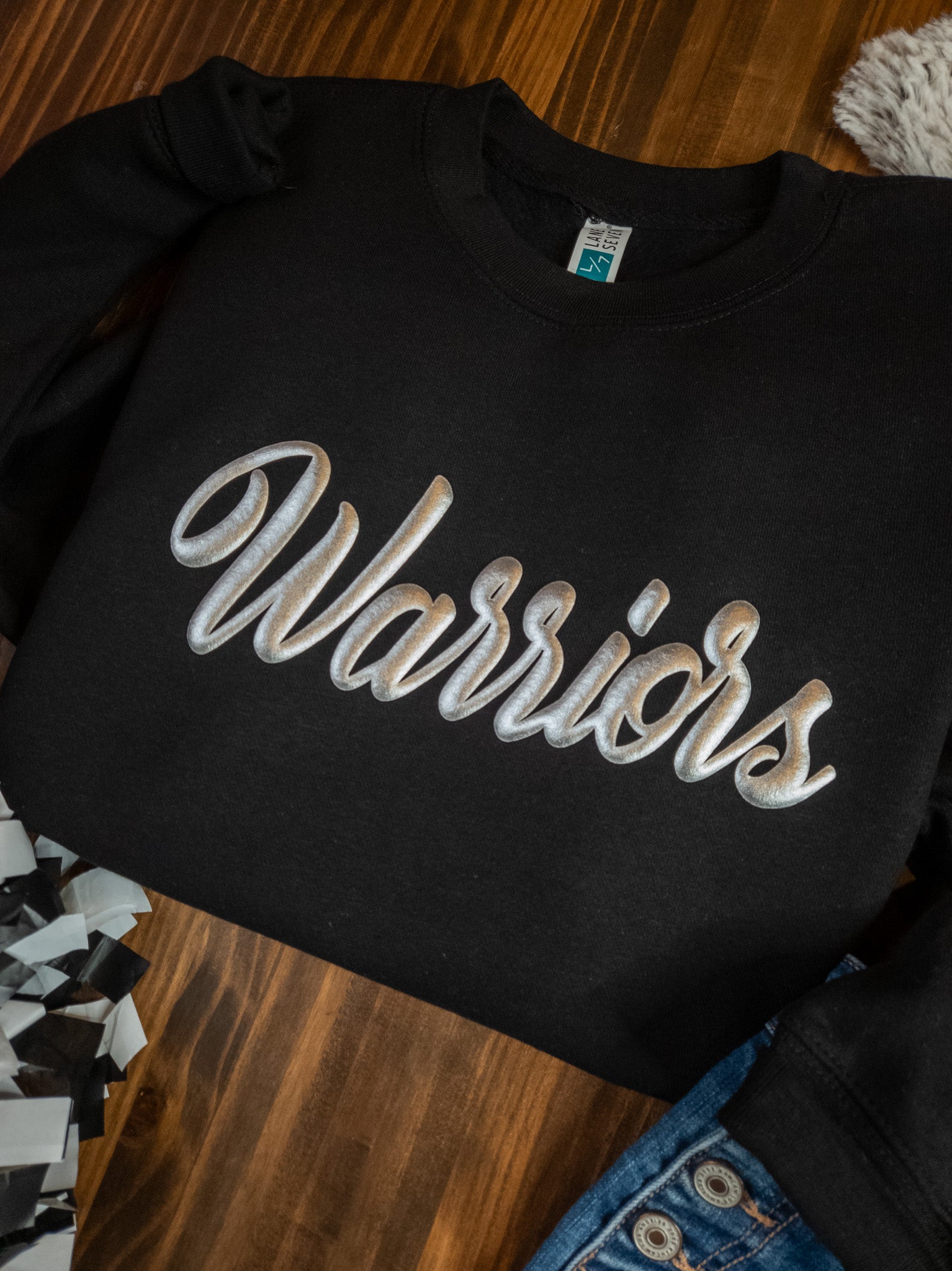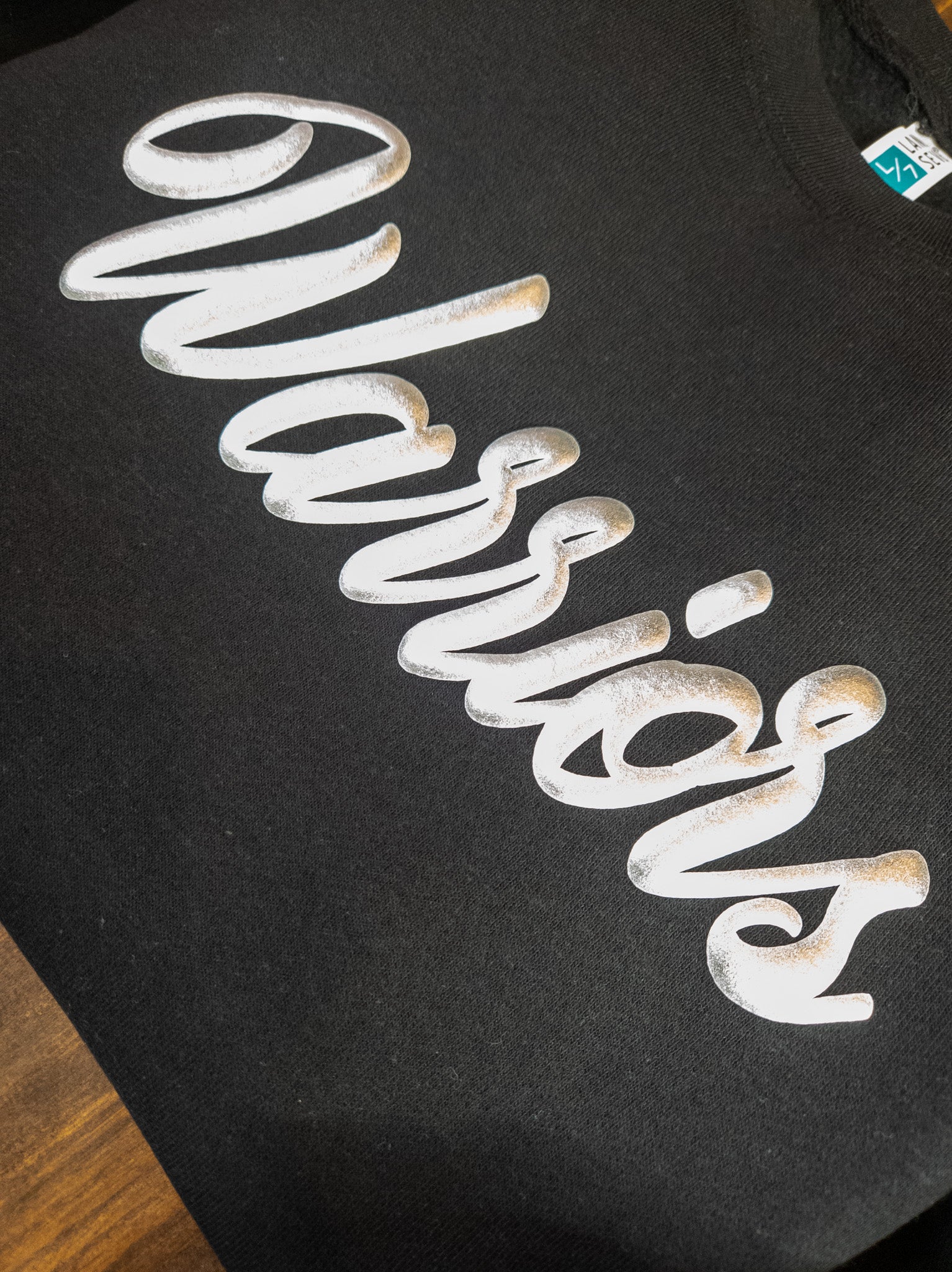 Warriors Silver Metallic Puff Black Plush Crewneck Sweatshirt