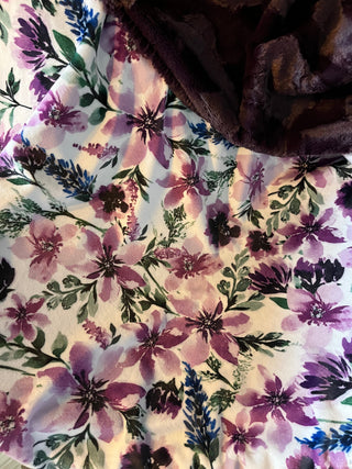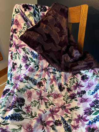 Purple Flowers Minky Blanket with Purple Hide Backing - Choose Size **Ready To Ship