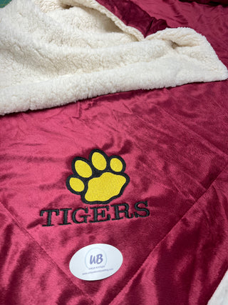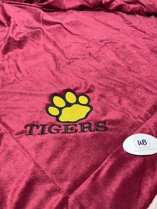 Maroon Minky Sherpa Blanket with Tigers and Paw Print Embroidery