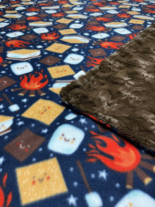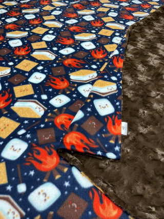 Navy Blue Smores' Fleece with Chocolate Brown Minky Blanket * Ready To Ship