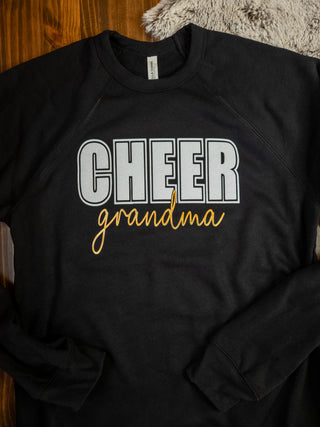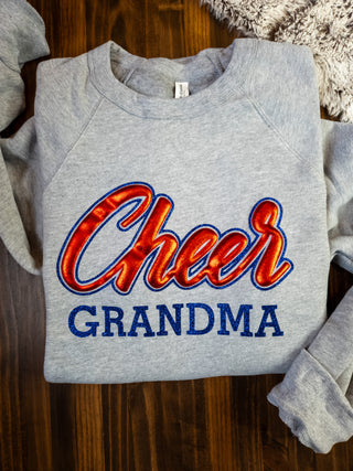Cheer Grandma Athletic Gray Sponge Fleece Crewneck Sweatshirt - Metallic Puff and Sparkle Print