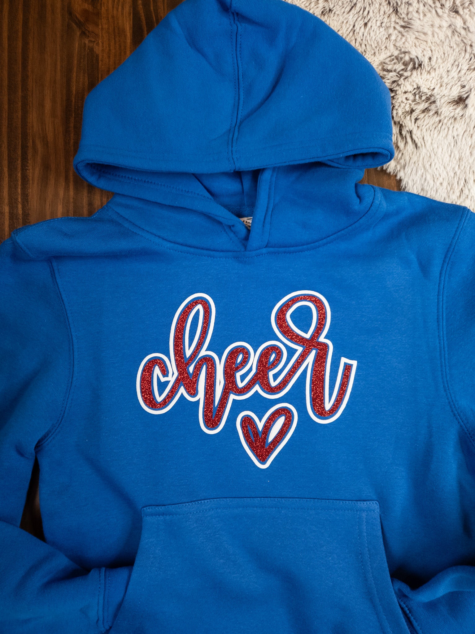 Cheerleader! This one is for you! A classic fit sweatshirt in royal blue color. Standard fit. Stick with your typical size for a true to size look. Size up for an oversized look. If you would like to add your name on the back, please select the personalization option.