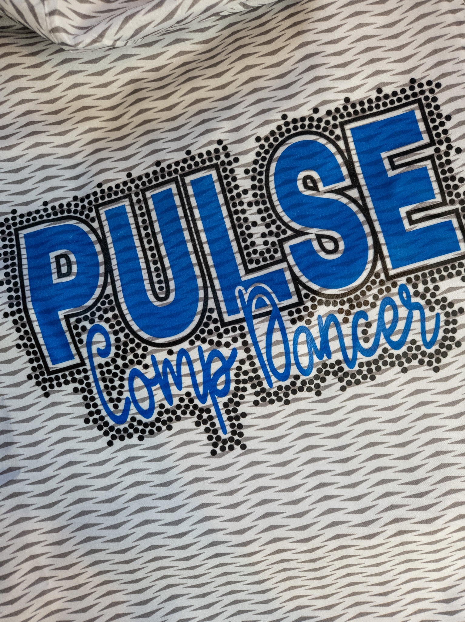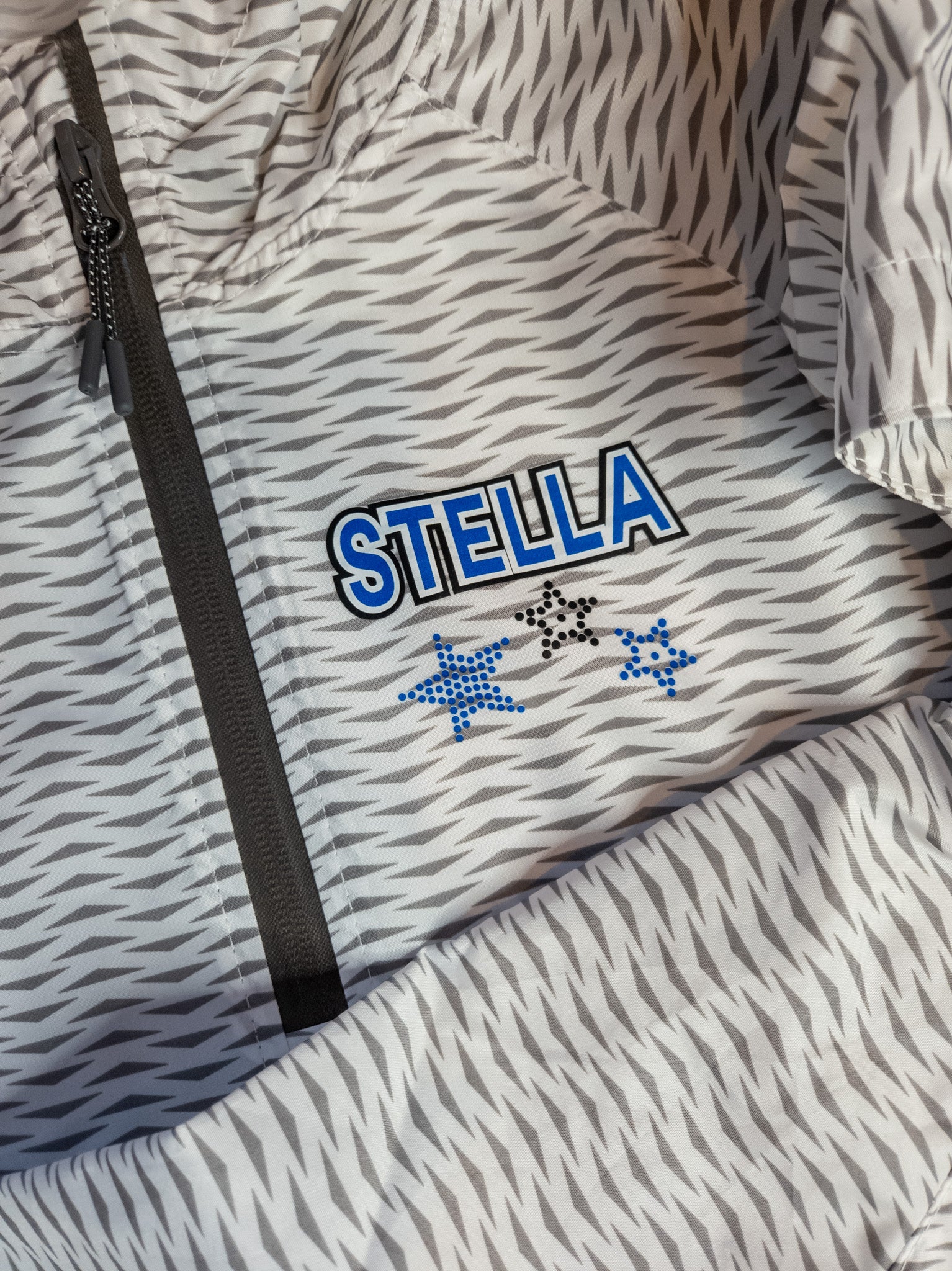 Be all weather ready with this layerable pullover. Featuring a tech weave style with gray accents on white. It also has a front zippered pocket (for all the things!) that the jacket can fold into, an open bottom and is a quarter zip. The pullover itself is wind and water resistant, in both a youth fit and adult fit. With half-elastic cuffs and an adjustable bottom hem, this pullover is ideal for changing weather conditions during practices and games. If you would like to add your dancer's name along with the stars on the front left chest like shown, please select the personalization option.