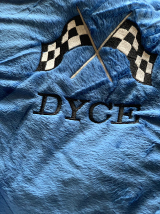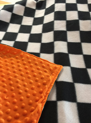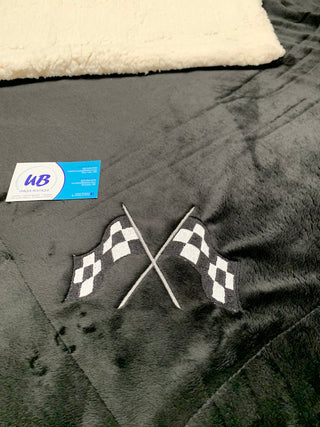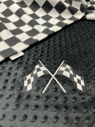 Checkered Plaid Fleece w/Embroidered Checkered Flags Blanket ~ Choose Minky Backing Color - 2 Sizes