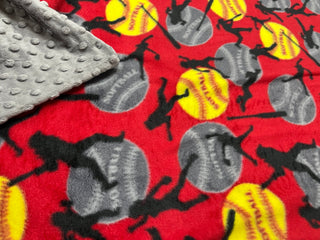 Red Softball Blanket backed with Graphite Gray Minky 2 size Options *Embroidery Personalization