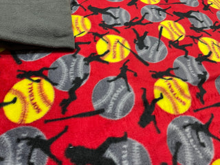 Red Softball Blanket backed with Charcoal Gray *Embroidery Personalization Available