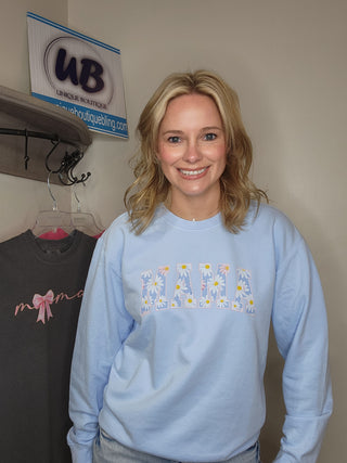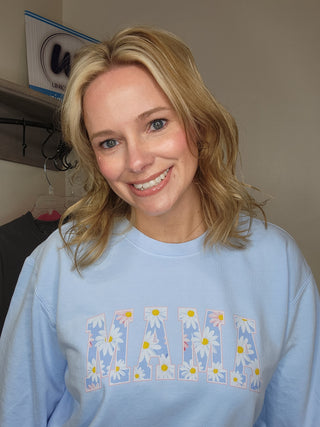 SMALL Mama Daisy Print Hydrangea Fleece Dyed Crewneck Sweatshirt